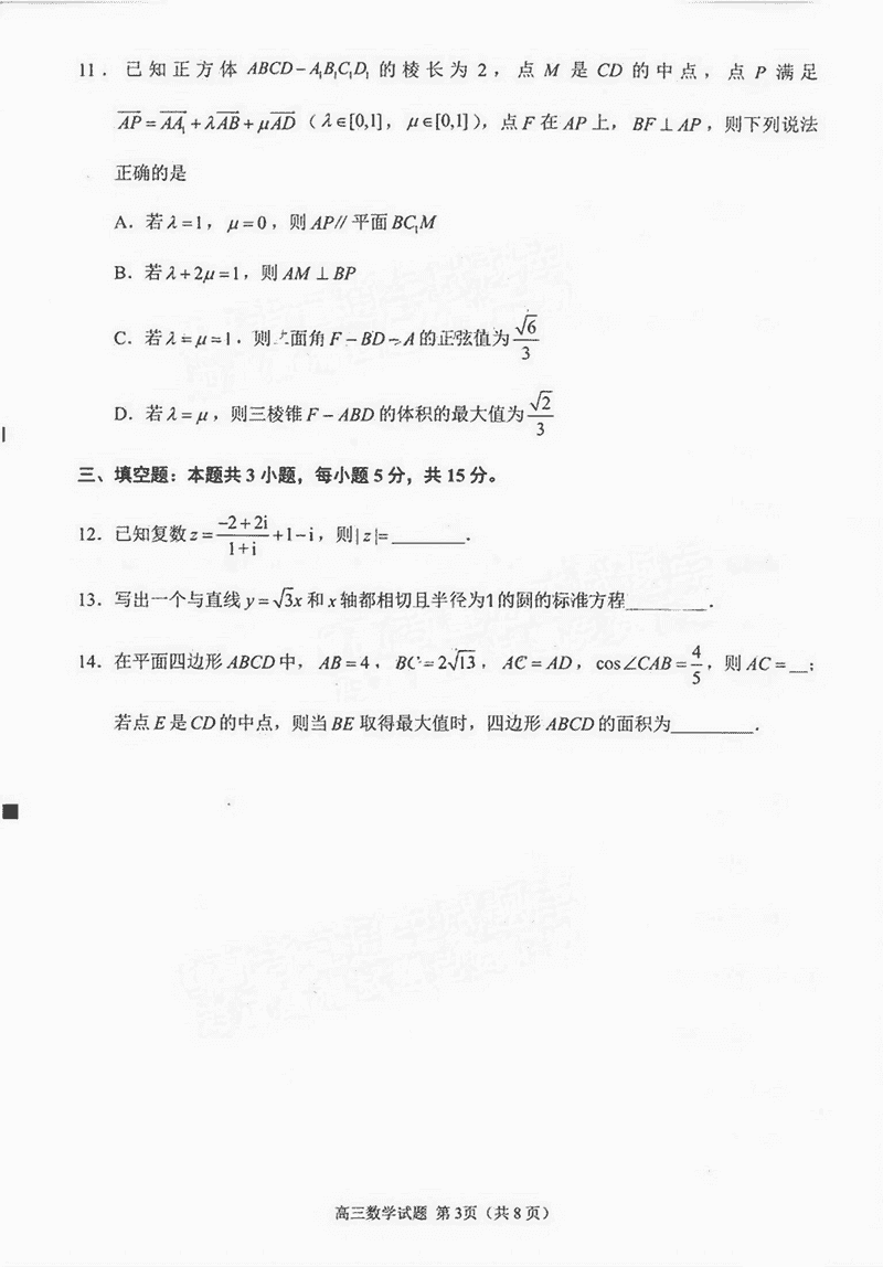 福建泉州2025届高中毕业班质量监测(二)数学考试已于近日开考,为方便考生考后及时查看考试情况,查漏补缺、弥补不足,本文整理了试题答案解析相关信息!