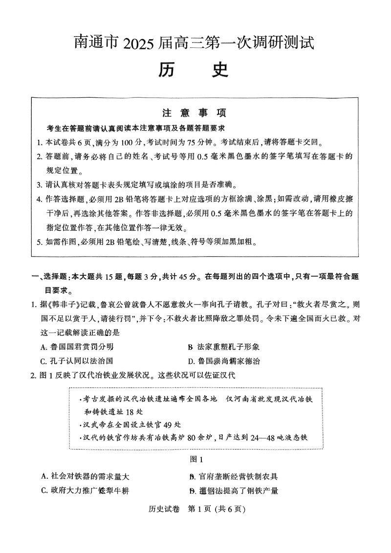 江苏南通2025年高三上学期一模历史试题及答案 时间:2025-01-20 江苏 文综试题 江苏南通2025年高三上学期一模历史考试已于近日开考,为方便考生考后及时查看考试情况,查漏补缺、弥补不足,本文整理了试题答案解析相关信息! 汇总:江苏南通2025年高三上学期一模试题及答案汇总 历史试题及答案解析
