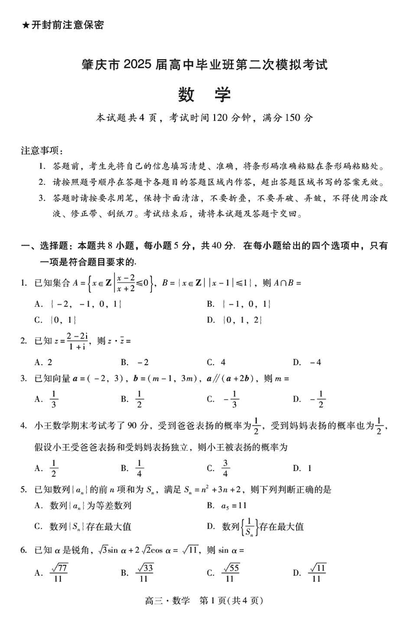 肇庆市2025届高三第二次模考暨汕尾期末数学考试已于近日开考,为方便考生考后及时查看考试情况,查漏补缺、弥补不足,本文整理了试题答案解析相关信息!