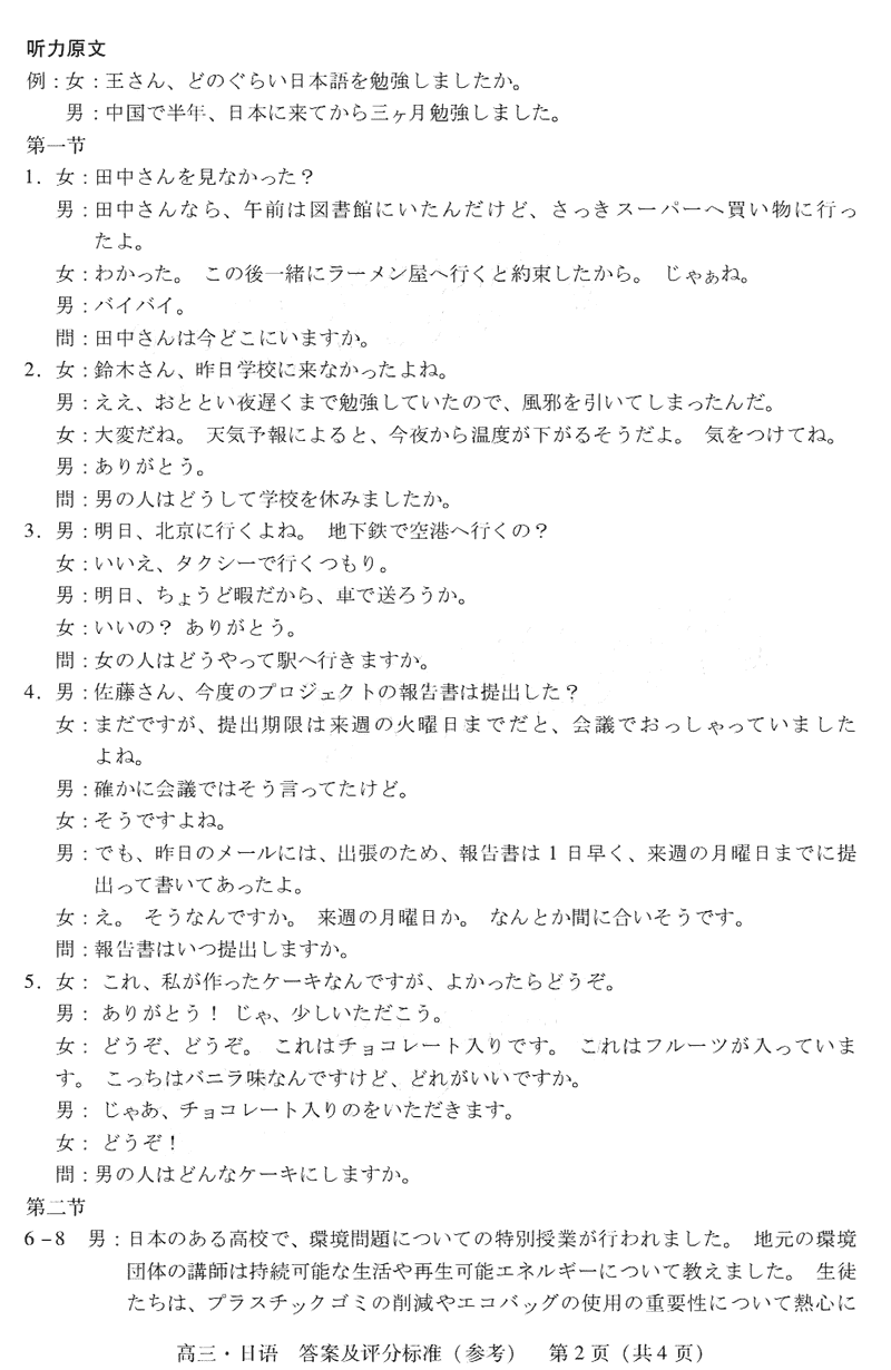 肇庆市2025届高三第二次模考暨汕尾期末日语试题及答案