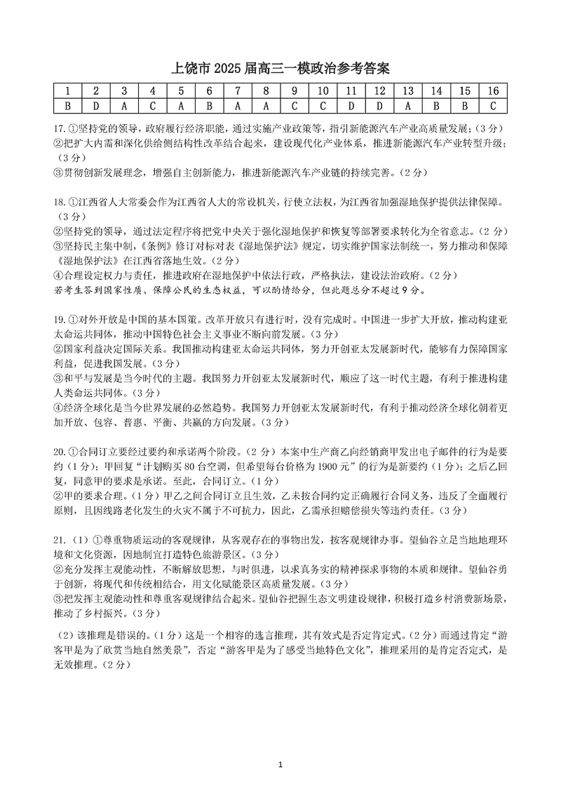 江西上饶2025届高三第一次高考模考政治考试已于近日开考,为方便考生考后及时查看考试情况,查漏补缺、弥补不足,本文整理了试题答案解析相关信息!