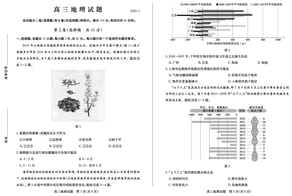 山东德州2025年高三上学期1月期末地理考试已于近日开考,为方便考生考后及时查看考试情况,查漏补缺、弥补不足,本文整理了试题答案解析相关信息!
