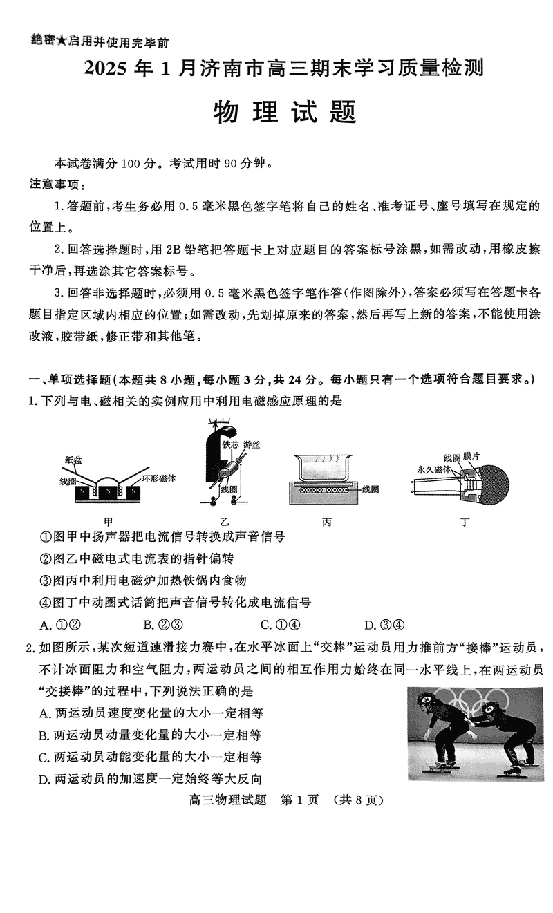 山东济南2025年高三上学期1月期末物理考试已于近日开考,为方便考生考后及时查看考试情况,查漏补缺、弥补不足,本文整理了试题答案解析相关信息!