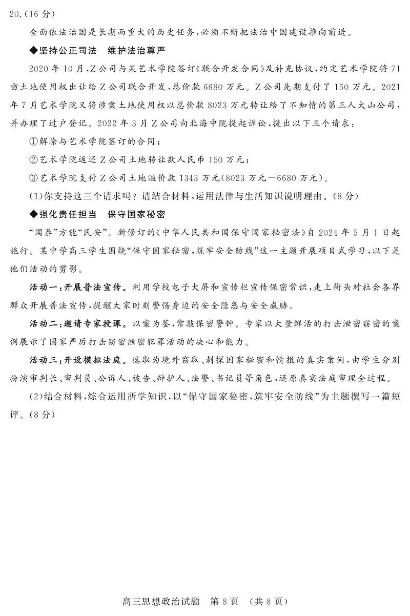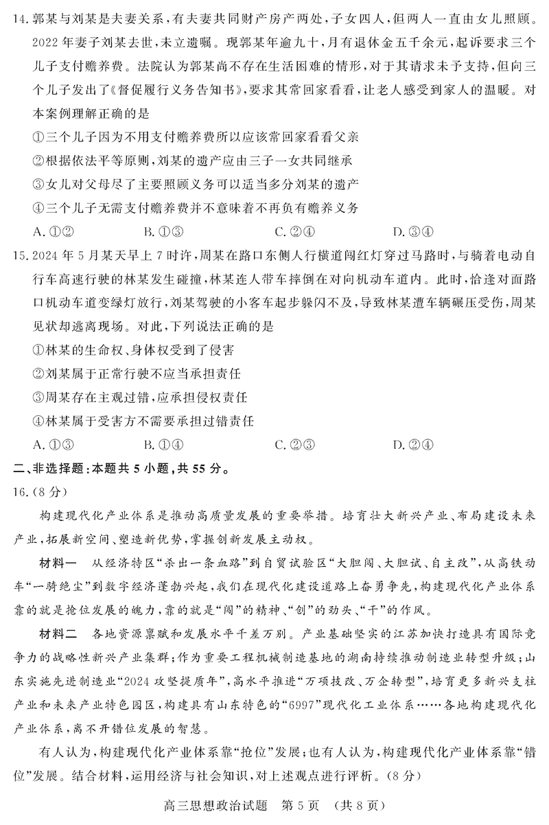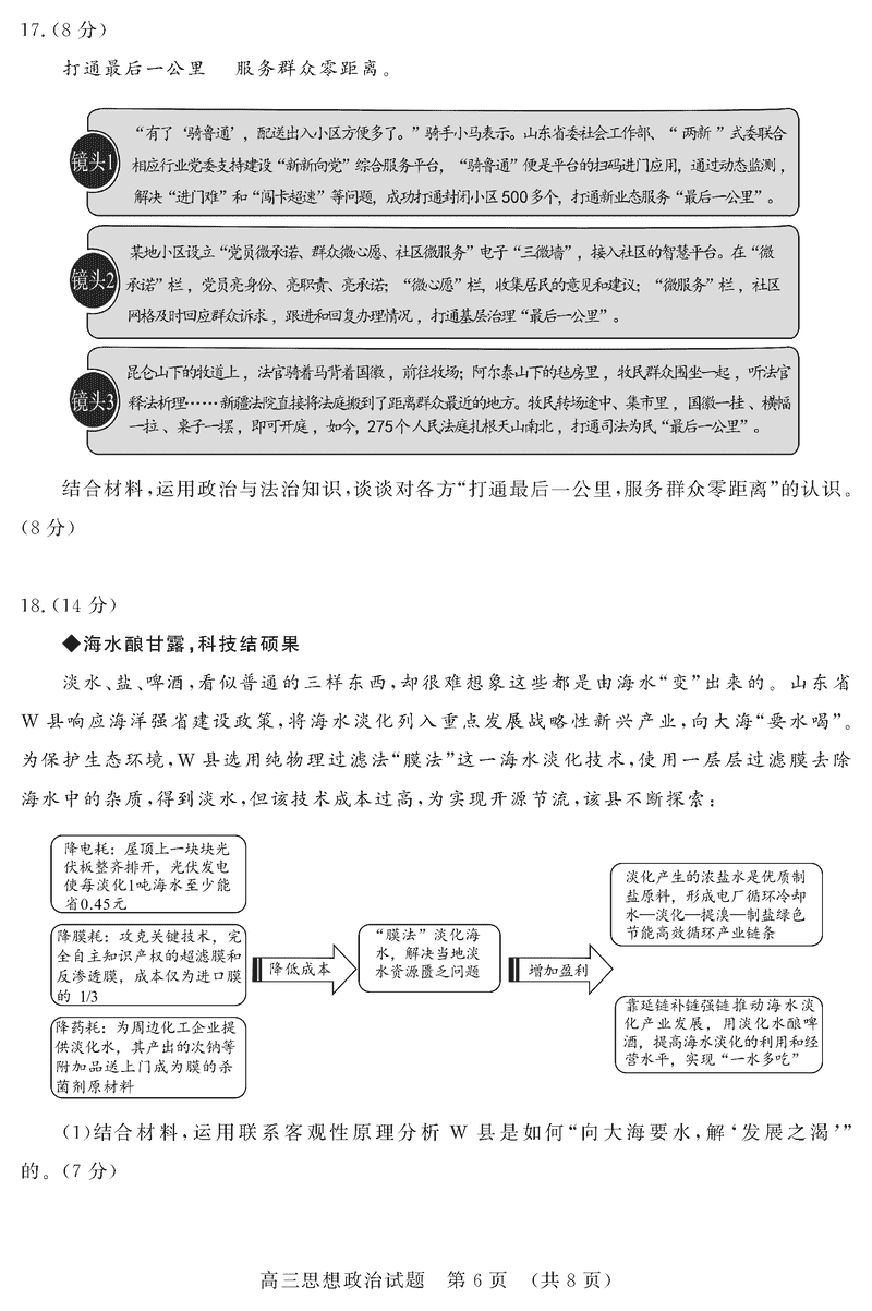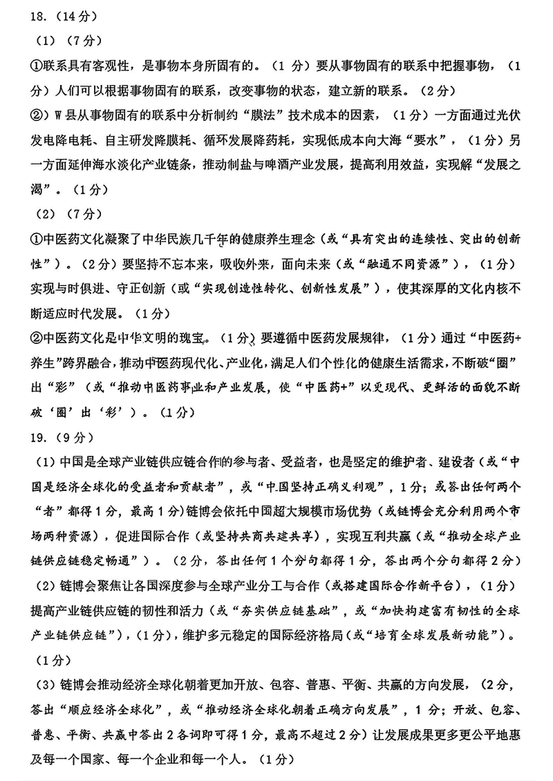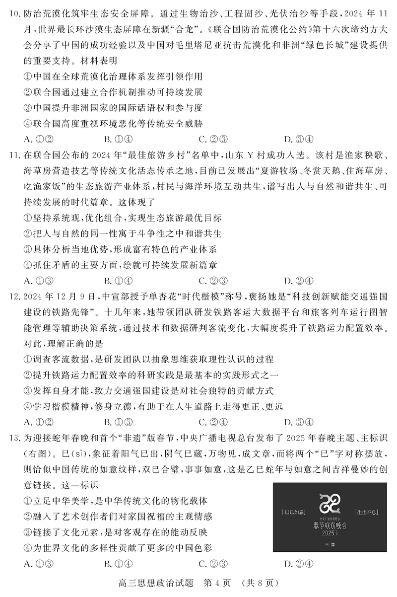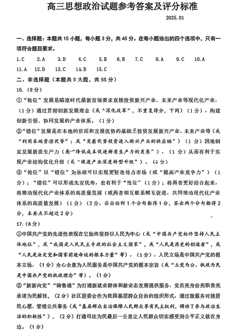 山东济南2025年高三上学期1月期末政治试题及答案