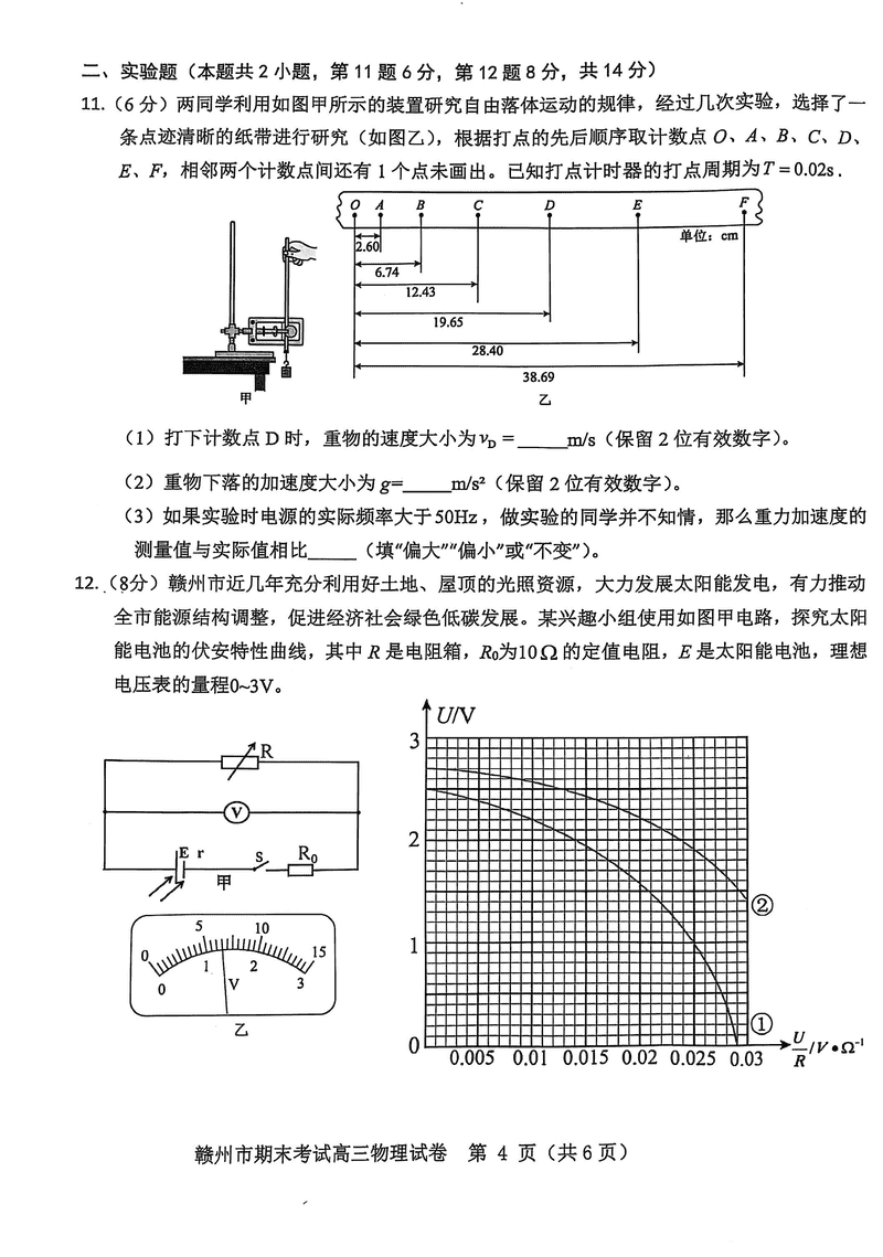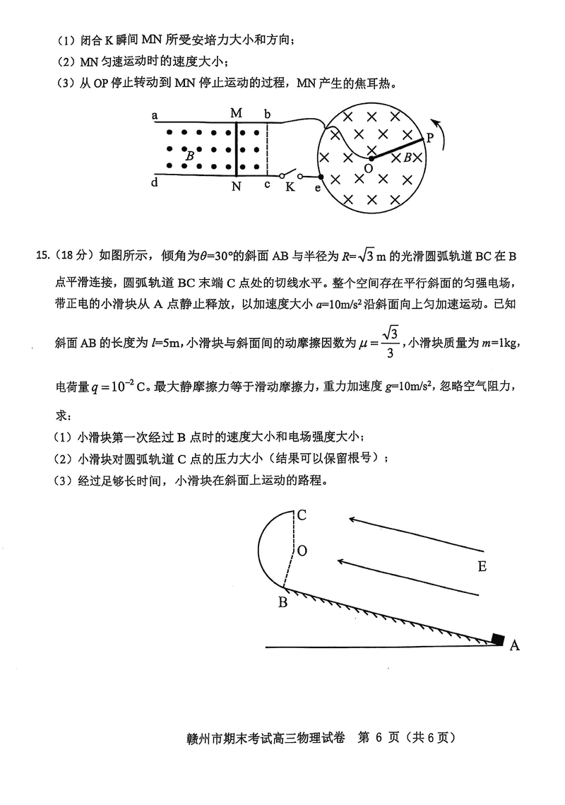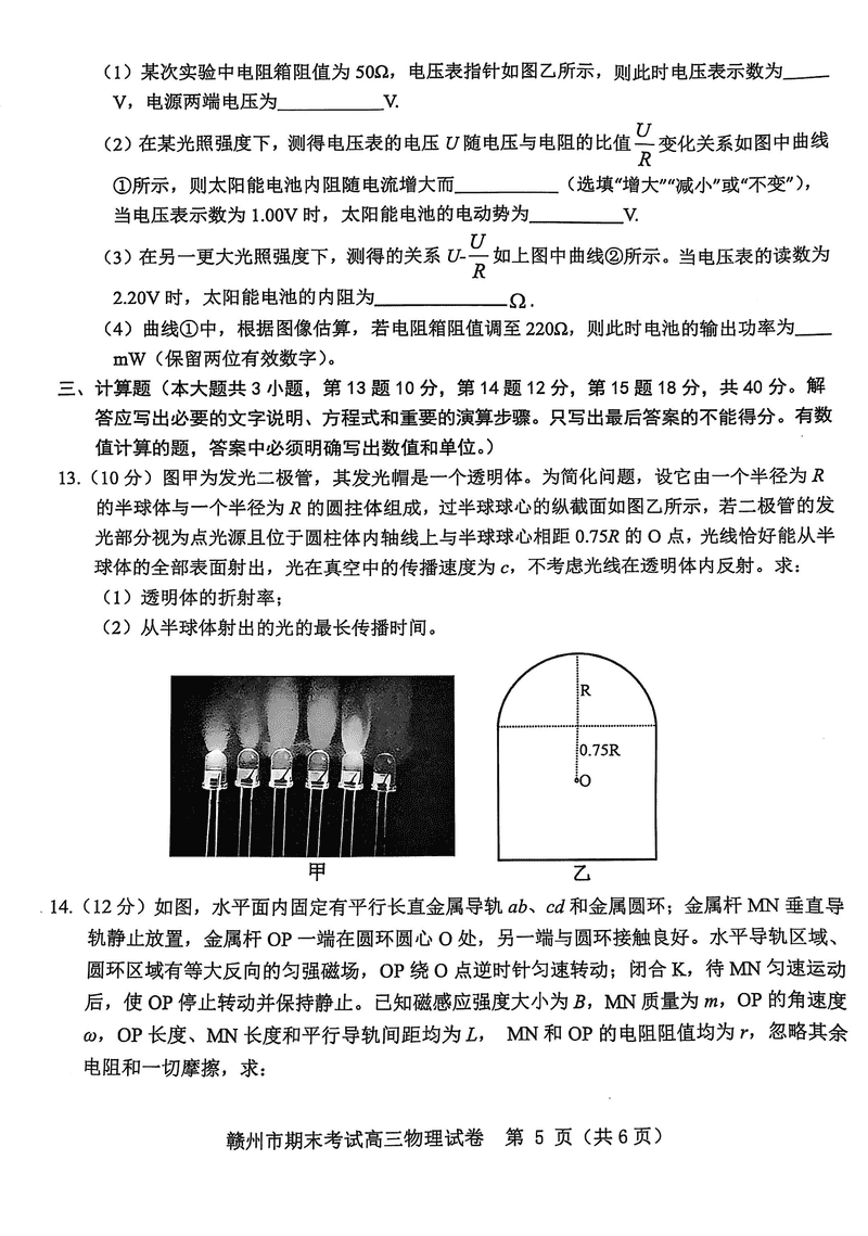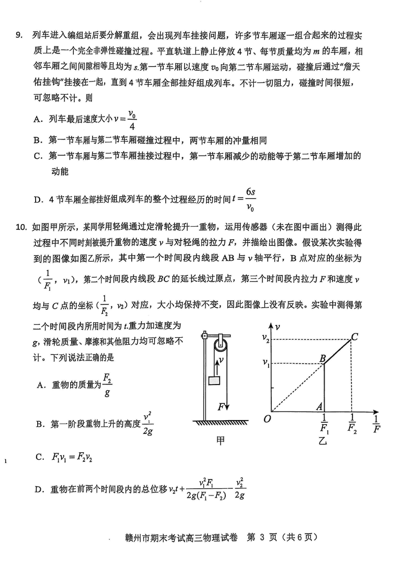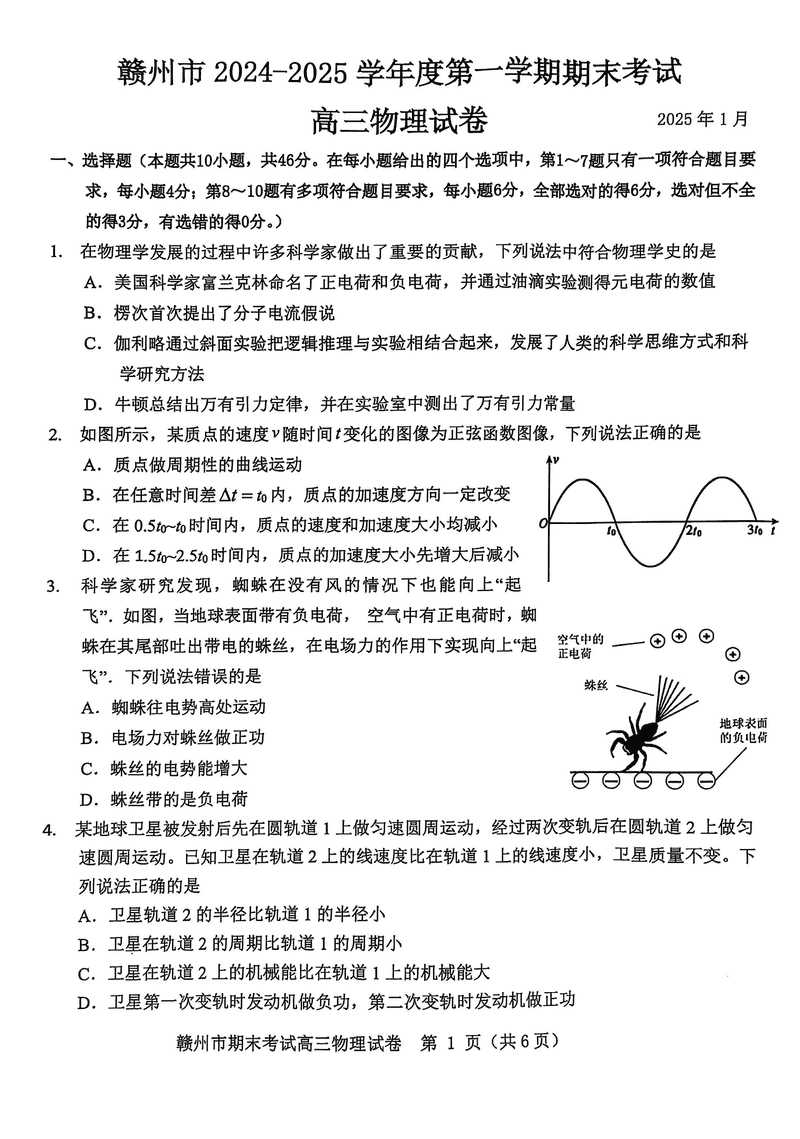江西赣州2025年1月高三上学期期末物理试题及答案