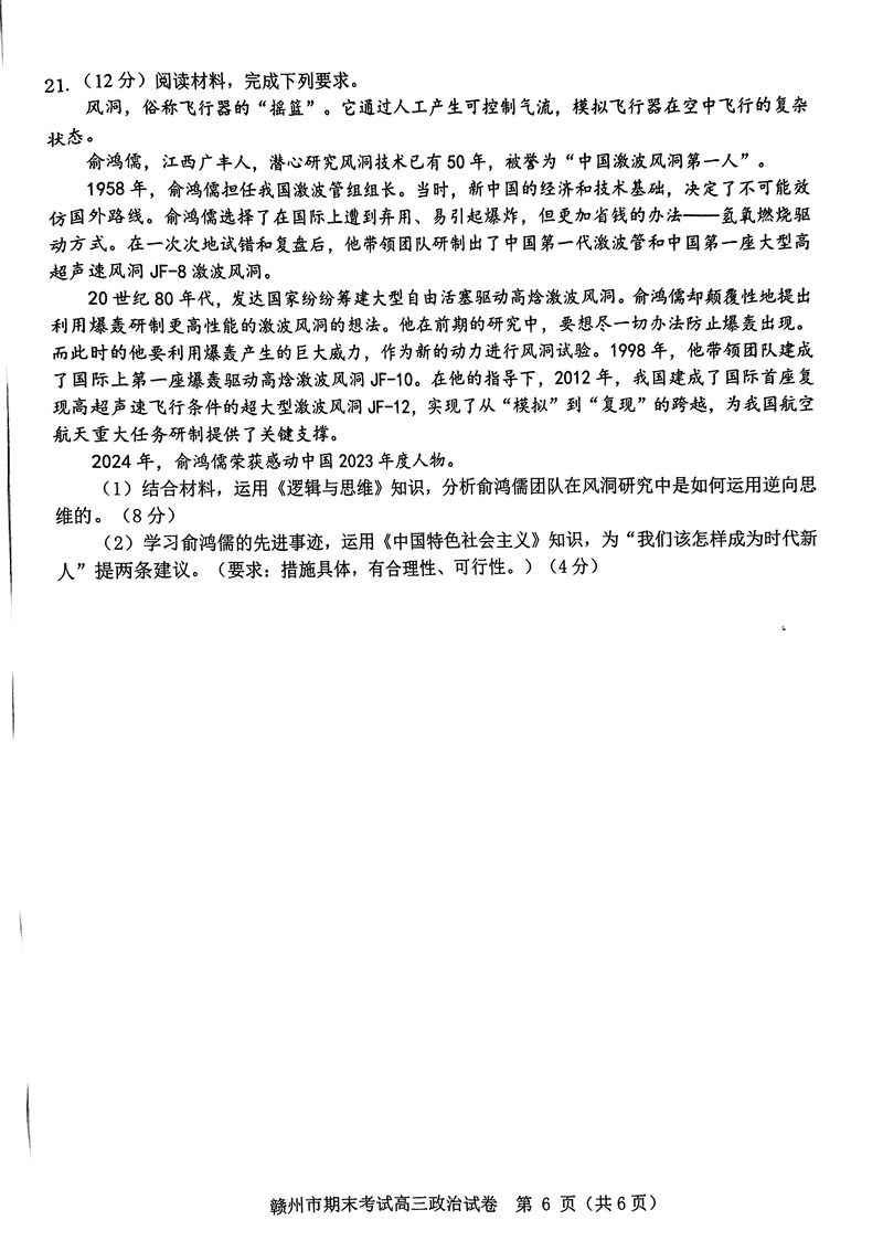 江西赣州2025年1月高三上学期期末政治考试已于近日开考,为方便考生考后及时查看考试情况,查漏补缺、弥补不足,本文整理了试题答案解析相关信息!