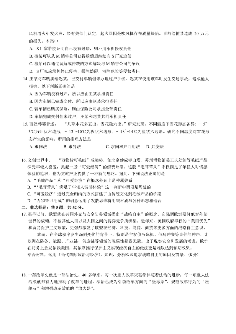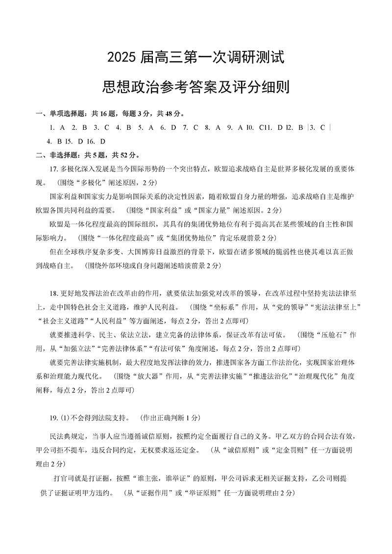 苏北四市2025届高三第一次调研政治试题及答案 时间:2025-01-20 江苏 文综试题 苏北四市(徐州、宿迁、淮安、连云港)2025届高三第一次调研政治考试已于近日开考,为方便考生考后及时查看考试情况,查漏补缺、弥补不足,本文整理了试题答案解析相关信息! 汇总:苏北四市2025届高三第一次调研测试试题及答案汇总 政治试题及答案解析