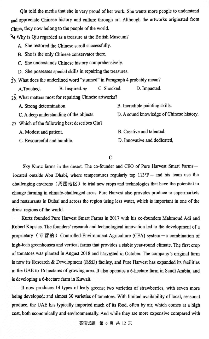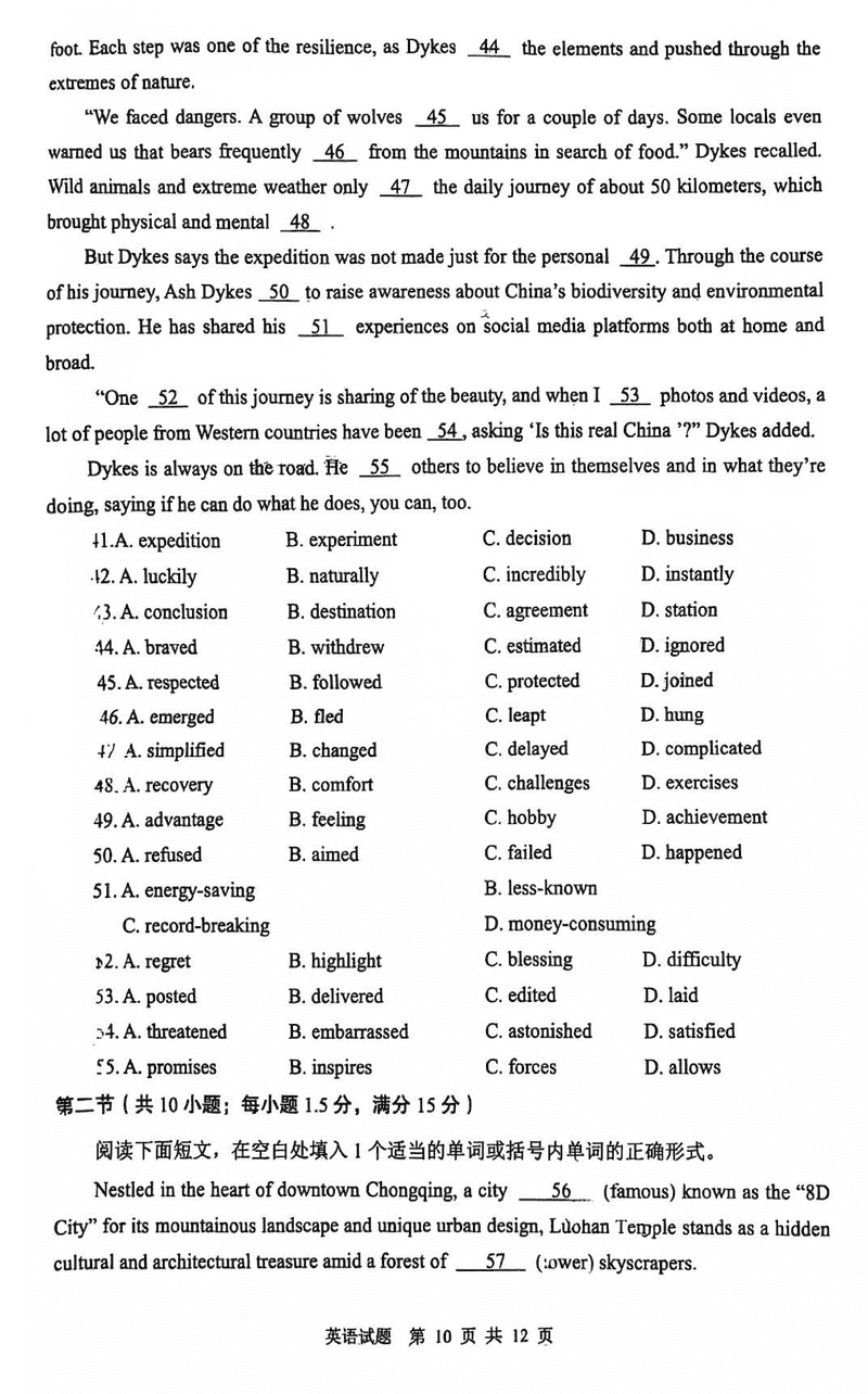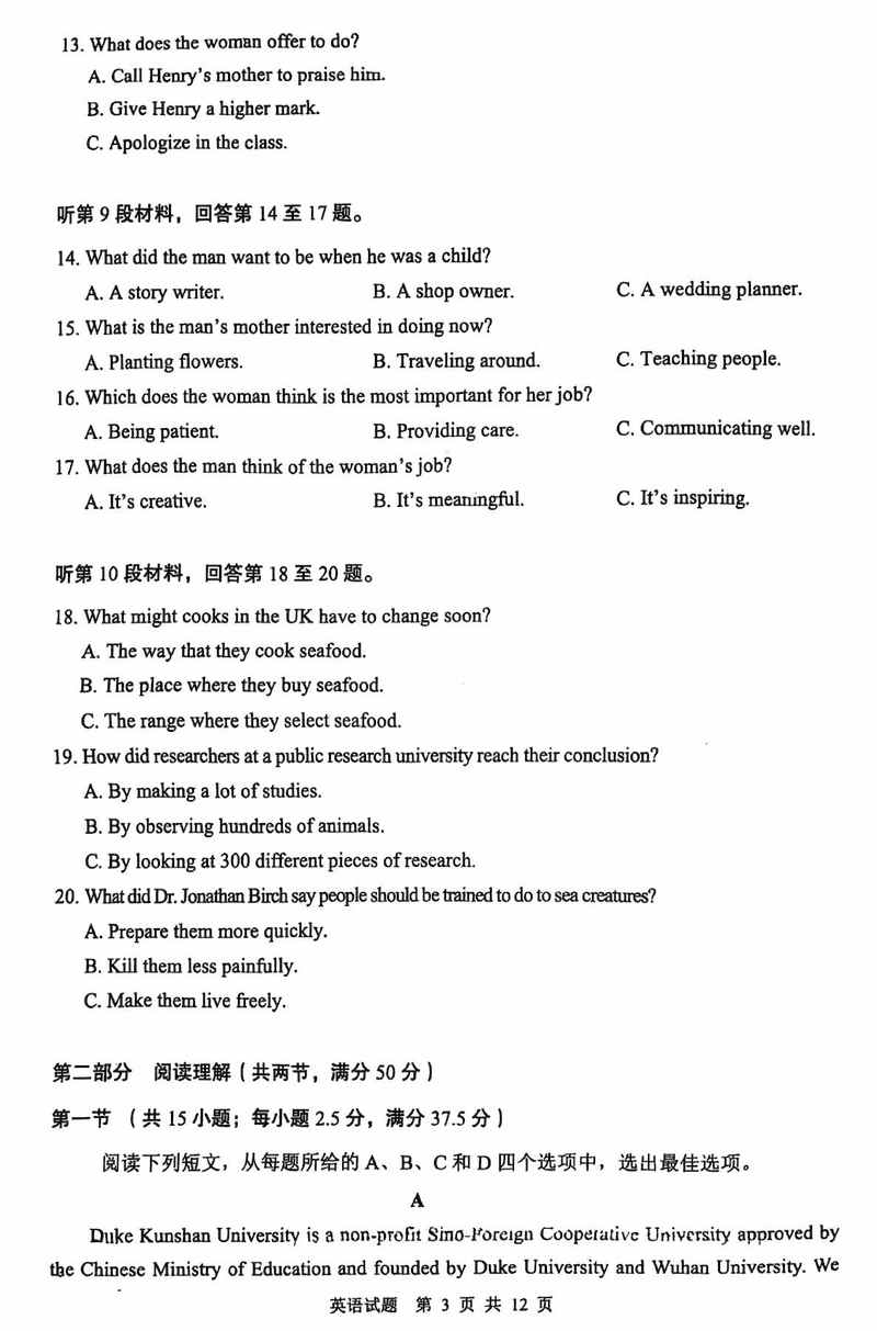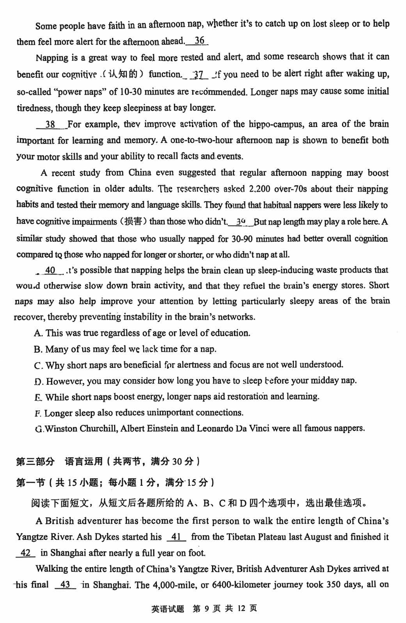 陕西 英语试题