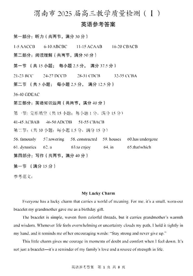 陕西渭南2025届高三上学期教学质量检测Ⅰ英语考试已于近日开考,为方便考生考后及时查看考试情况,查漏补缺、弥补不足,本文整理了试题答案解析相关信息!