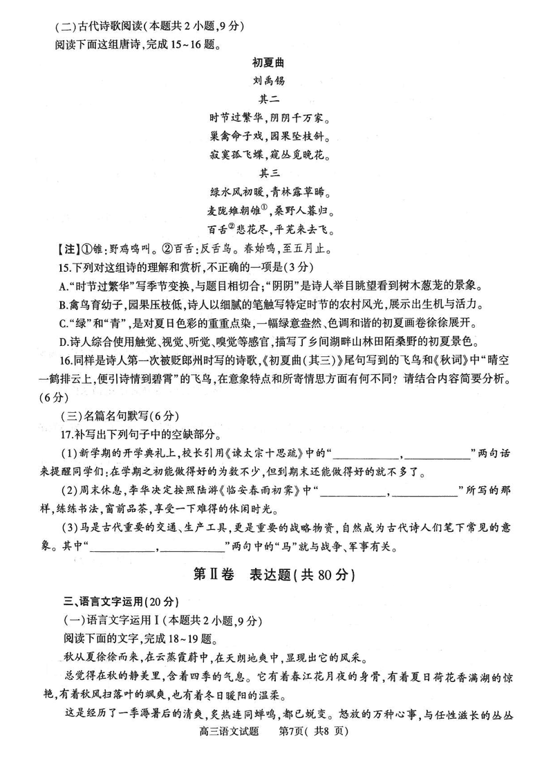 时间: 河南 语文试题