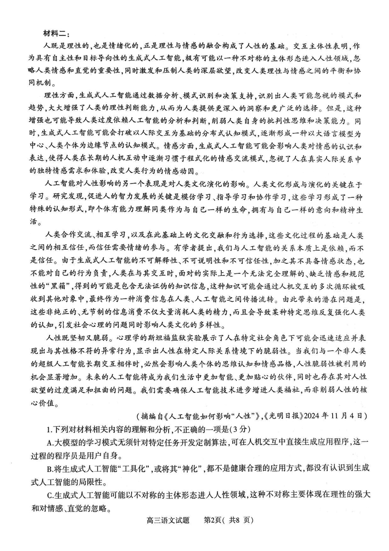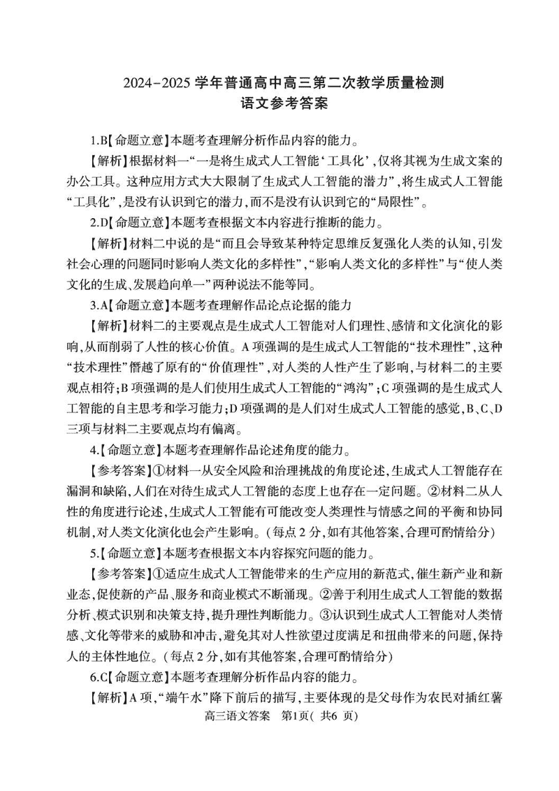 河南信阳2025年高三第二次教学质检语文试题及答案