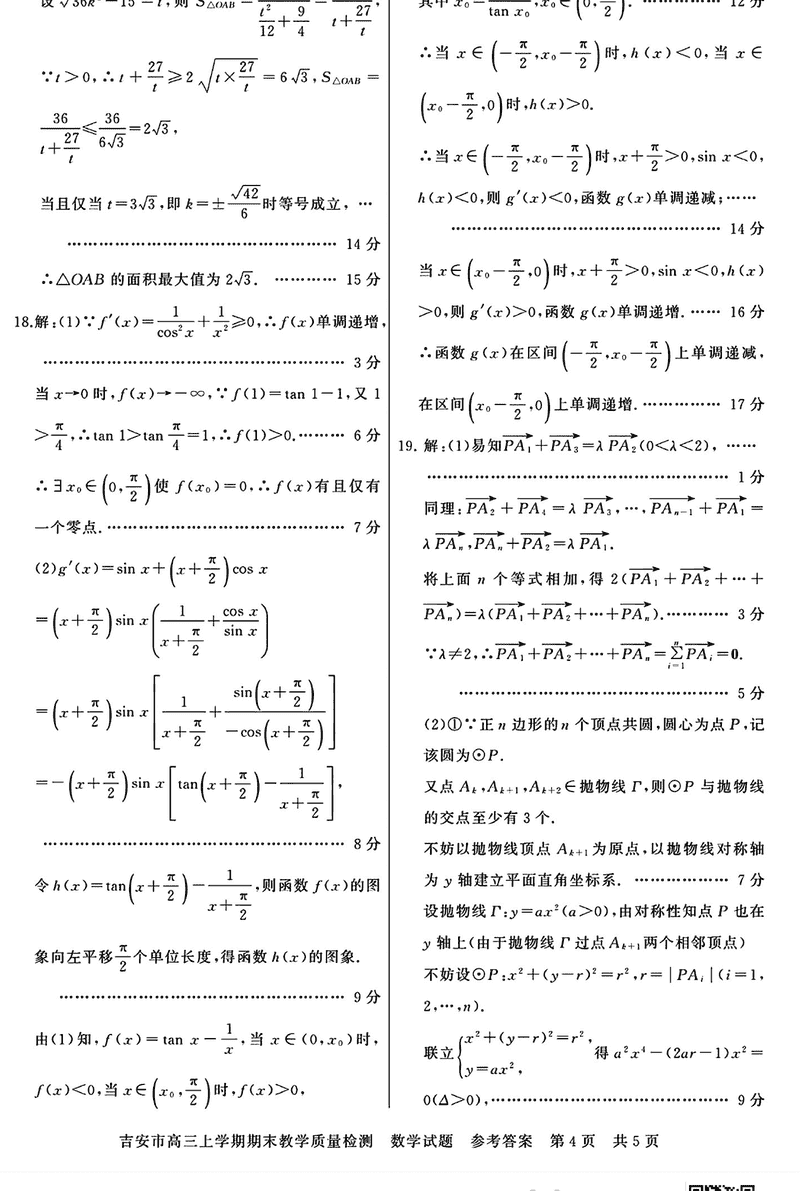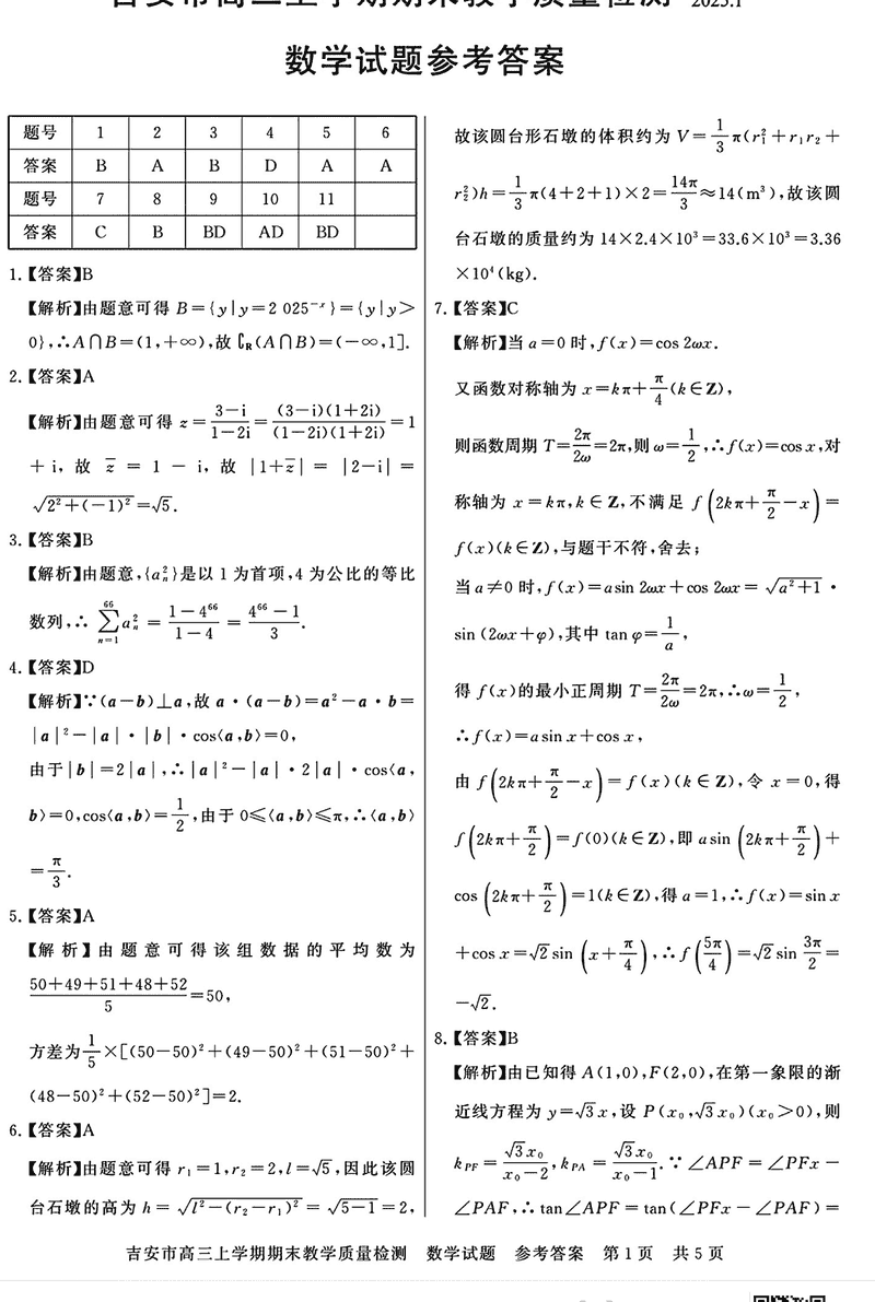 江西吉安2025届高三上1月期末教学质检数学考试已于近日开考,为方便考生考后及时查看考试情况,查漏补缺、弥补不足,本文整理了试题答案解析相关信息!