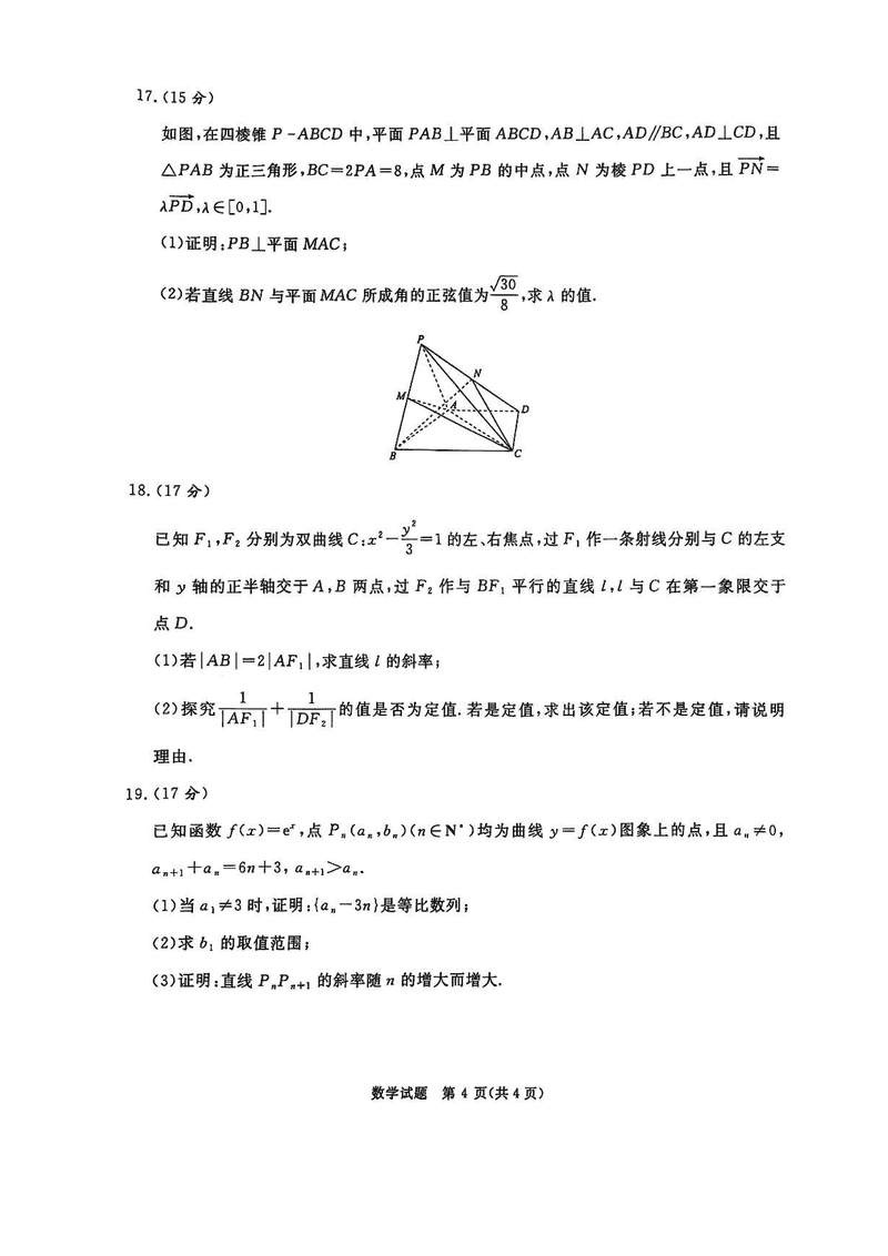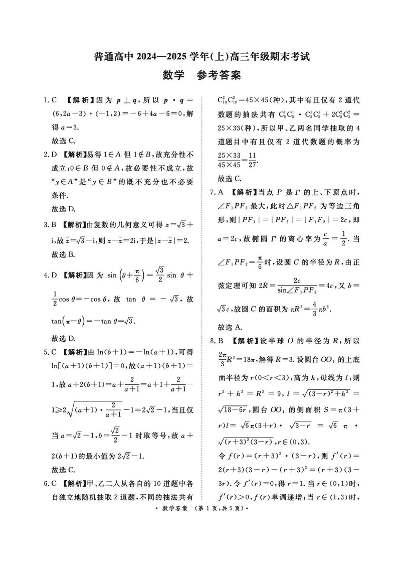 河南青桐鸣大联考2024-2025学年高三上期末数学试题及答案