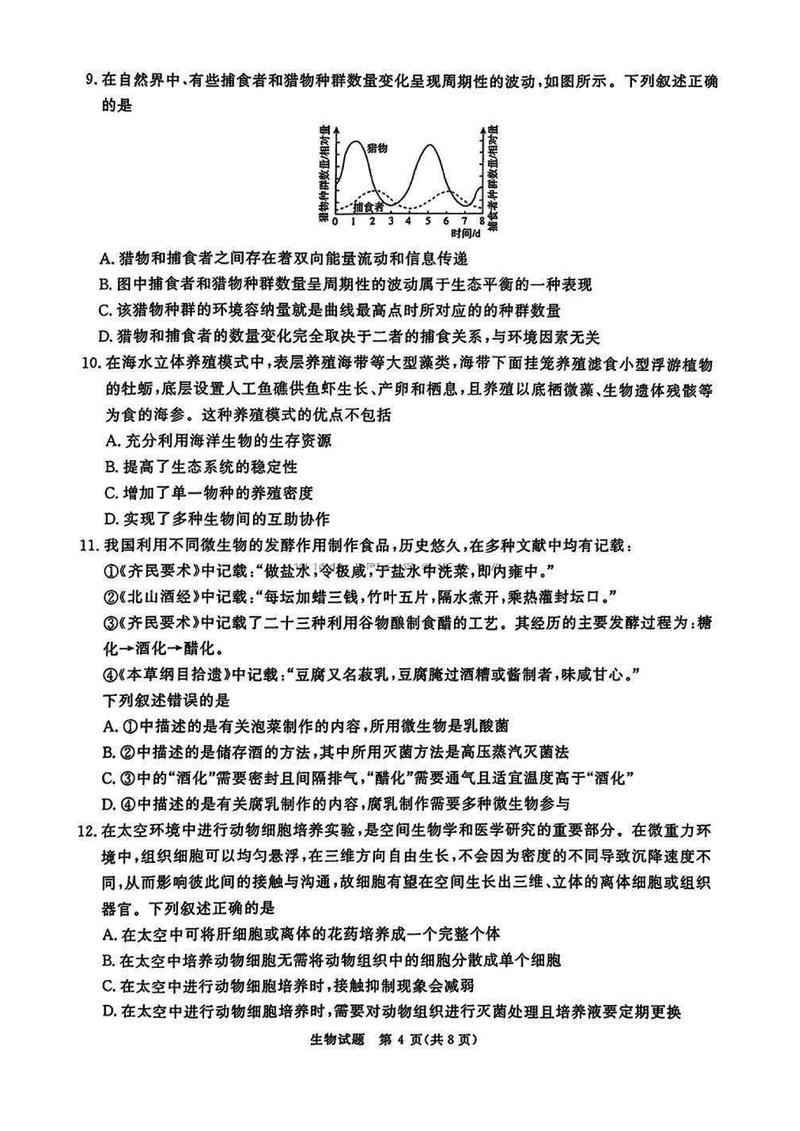 河南青桐鸣大联考2024-2025学年高三上期末生物试题及答案