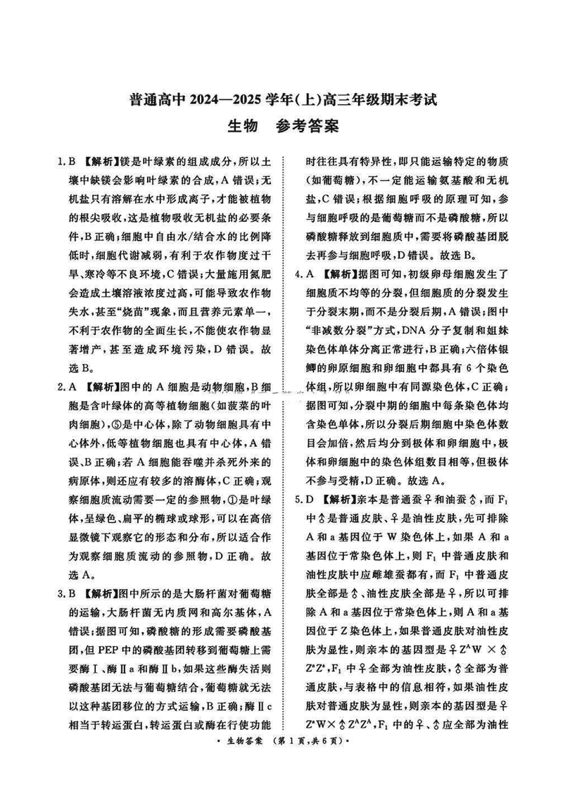 河南青桐鸣大联考2024-2025学年高三上期末生物考试已于近日开考,为方便考生考后及时查看考试情况,查漏补缺、弥补不足,本文整理了试题答案解析相关信息!