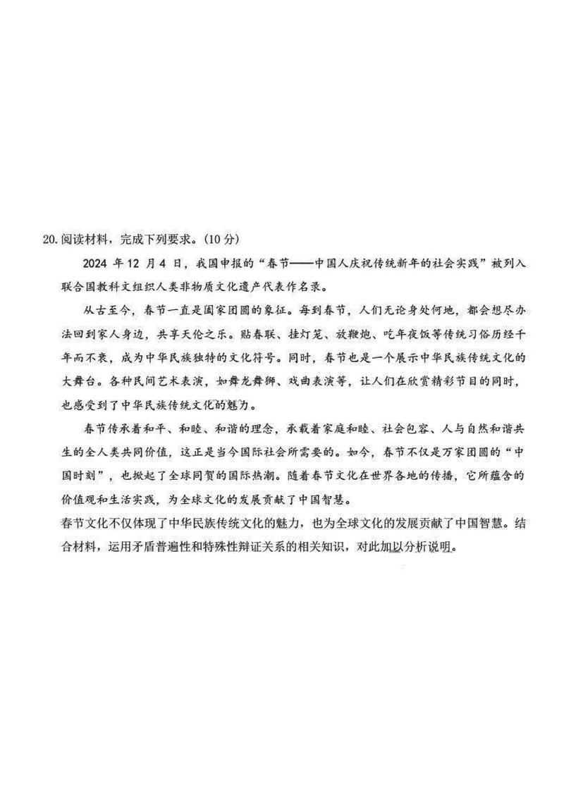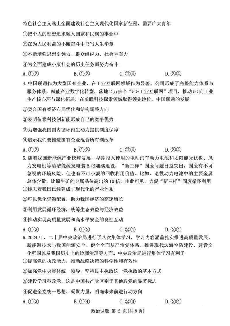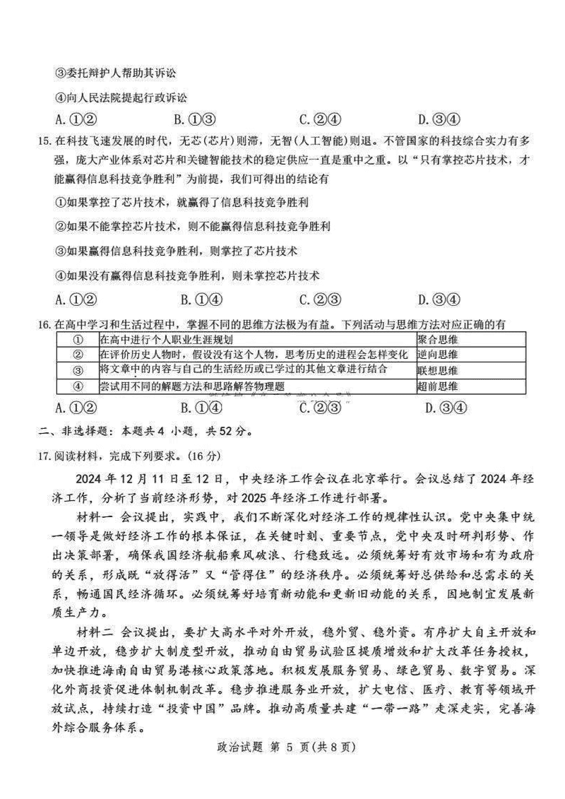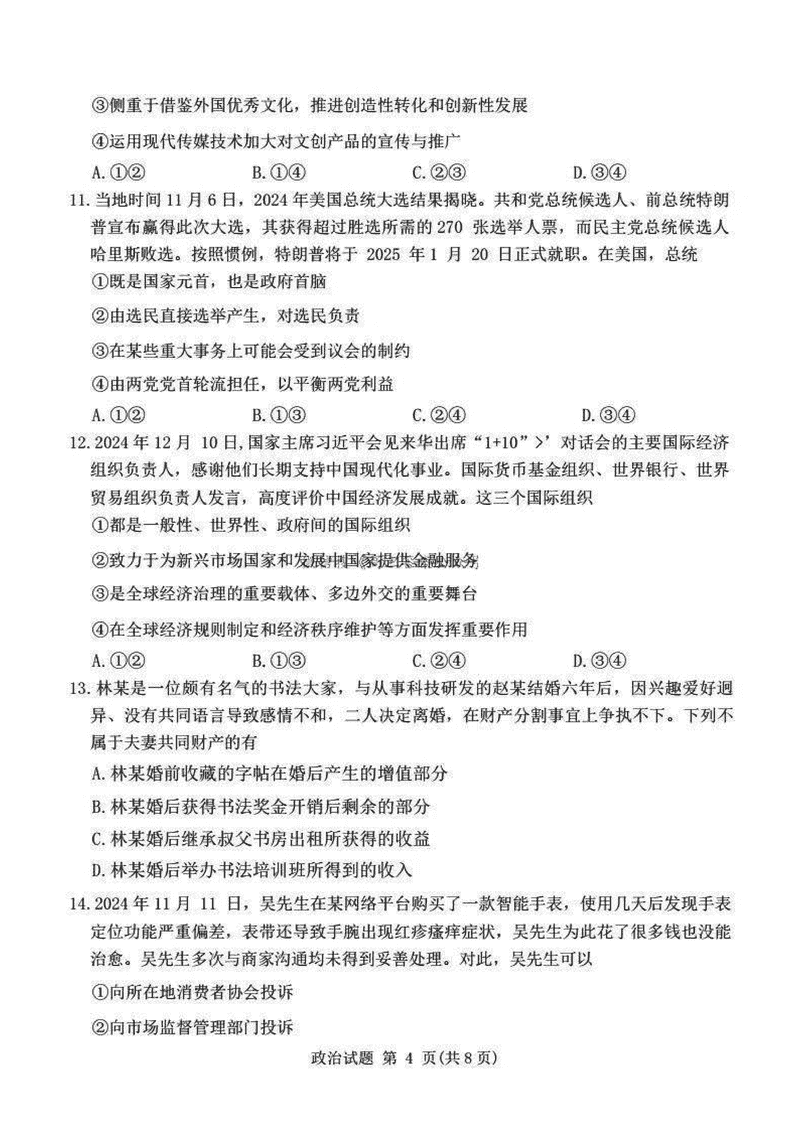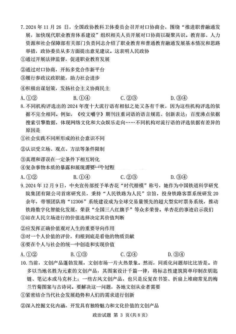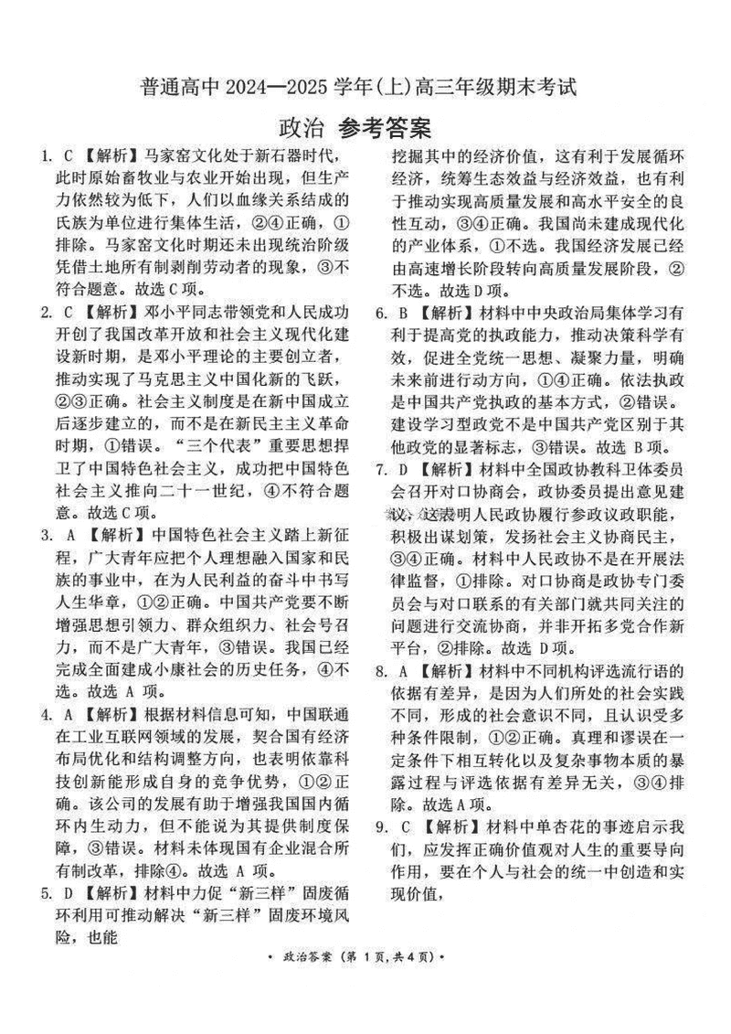 河南青桐鸣大联考2024-2025学年高三上期末政治试题及答案