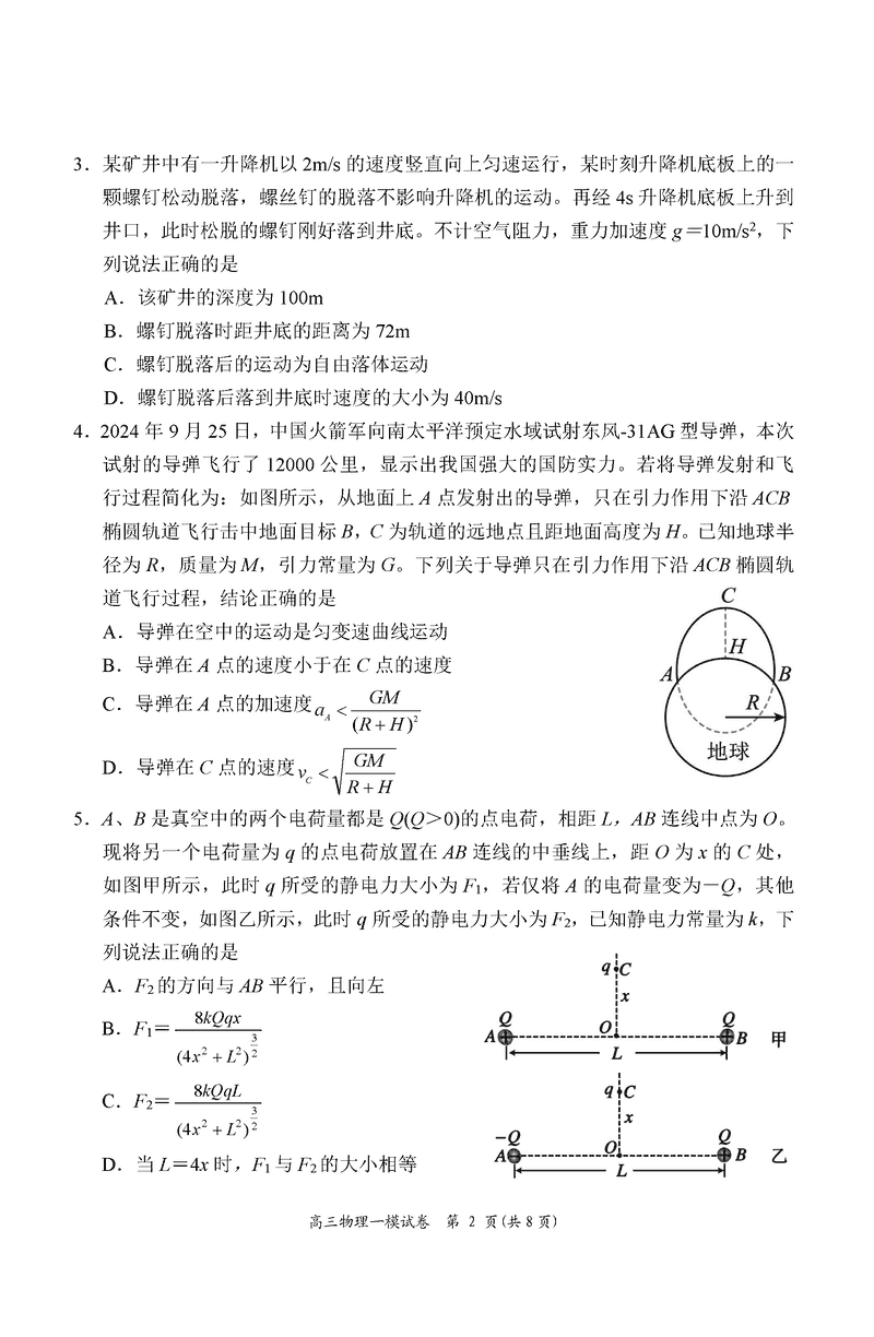湖南岳阳2025届高三上学期教学质量监测一物理试题及答案