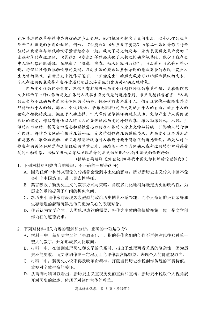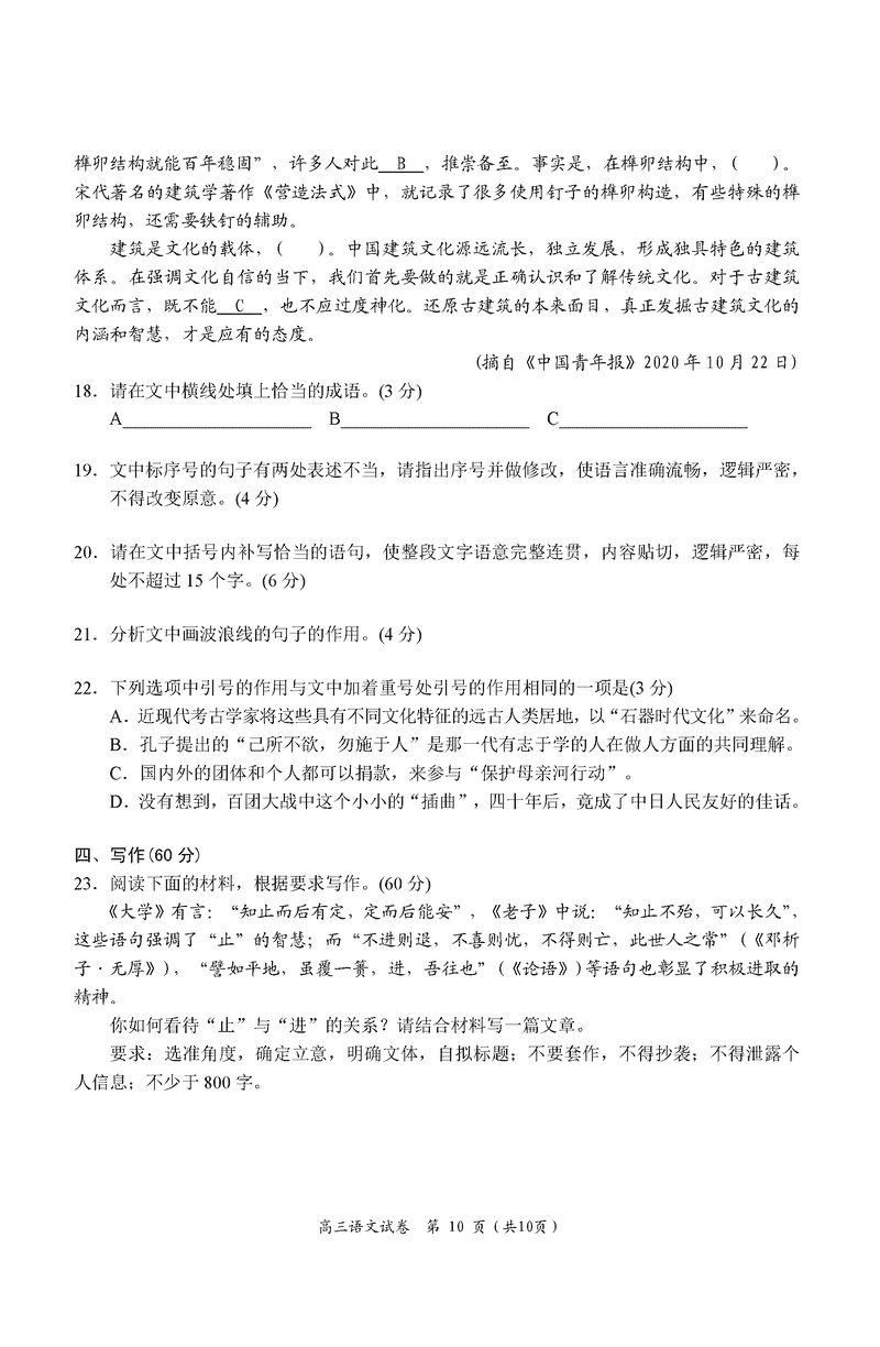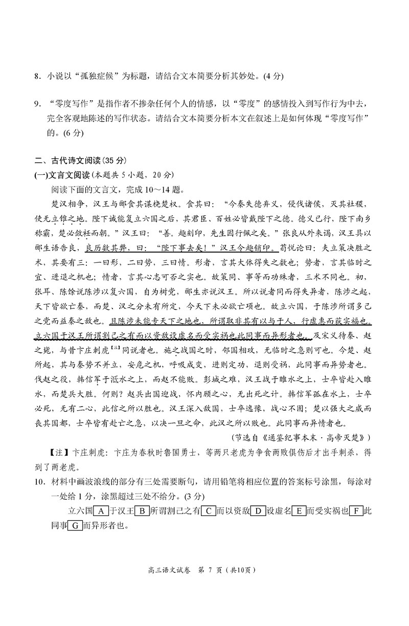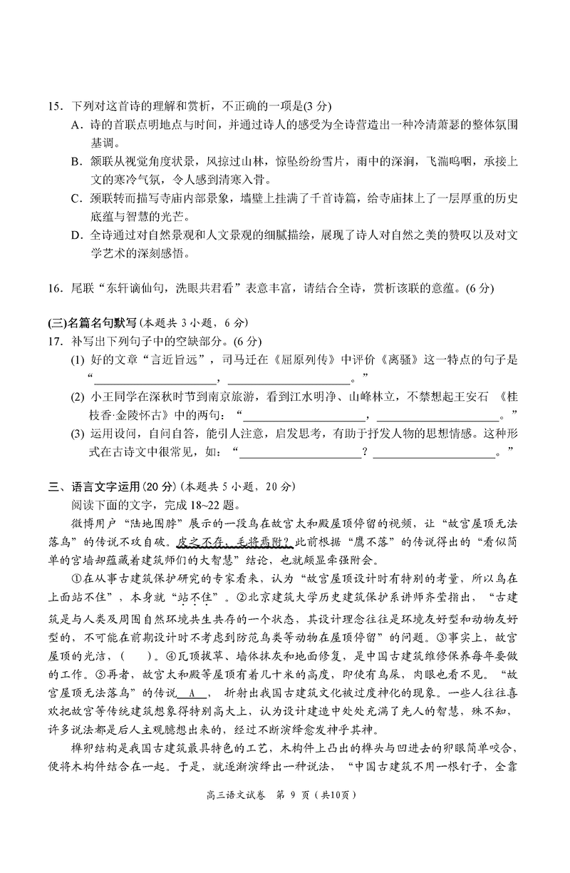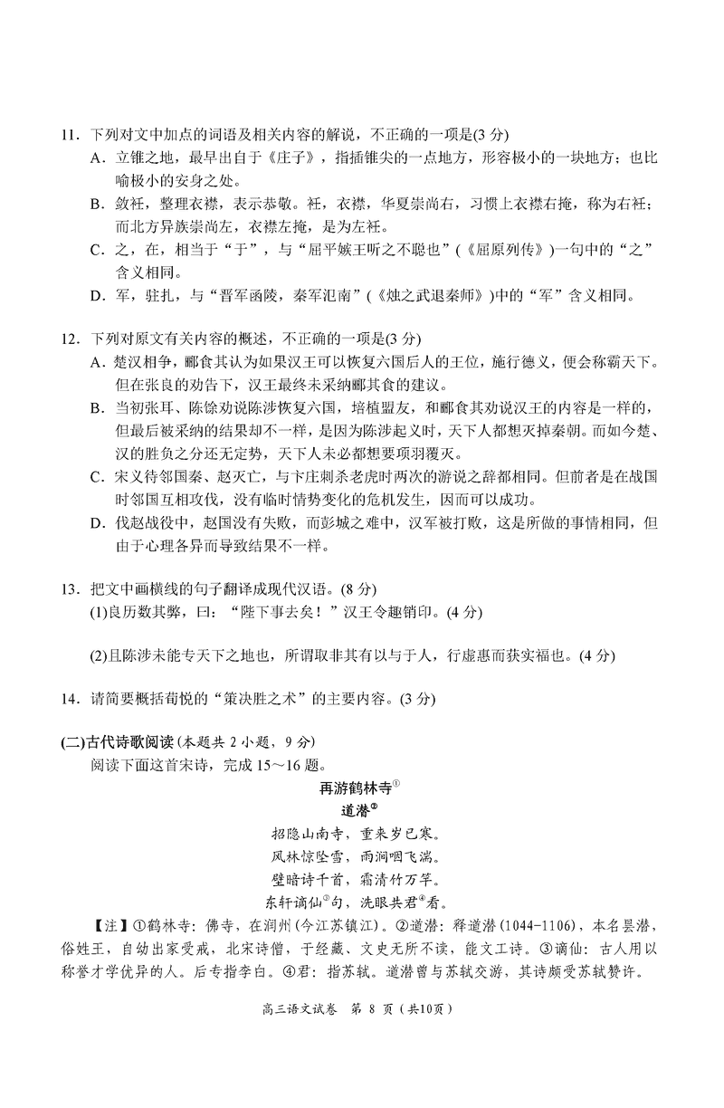 湖南 语文试题