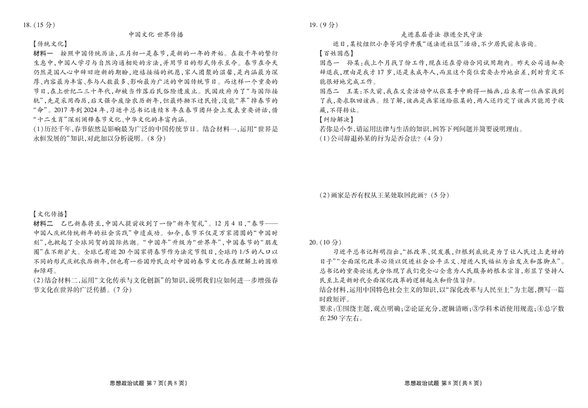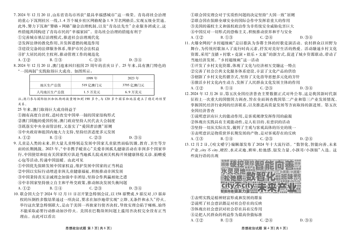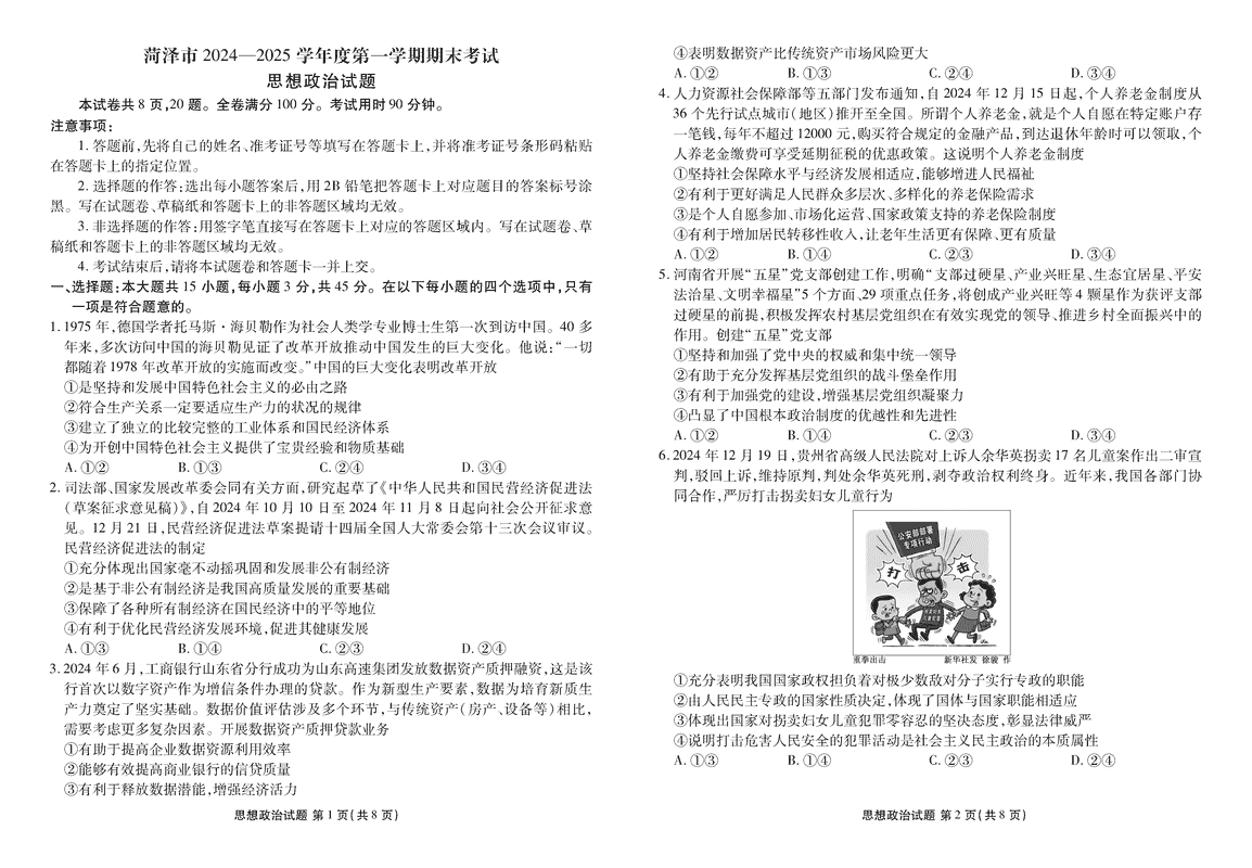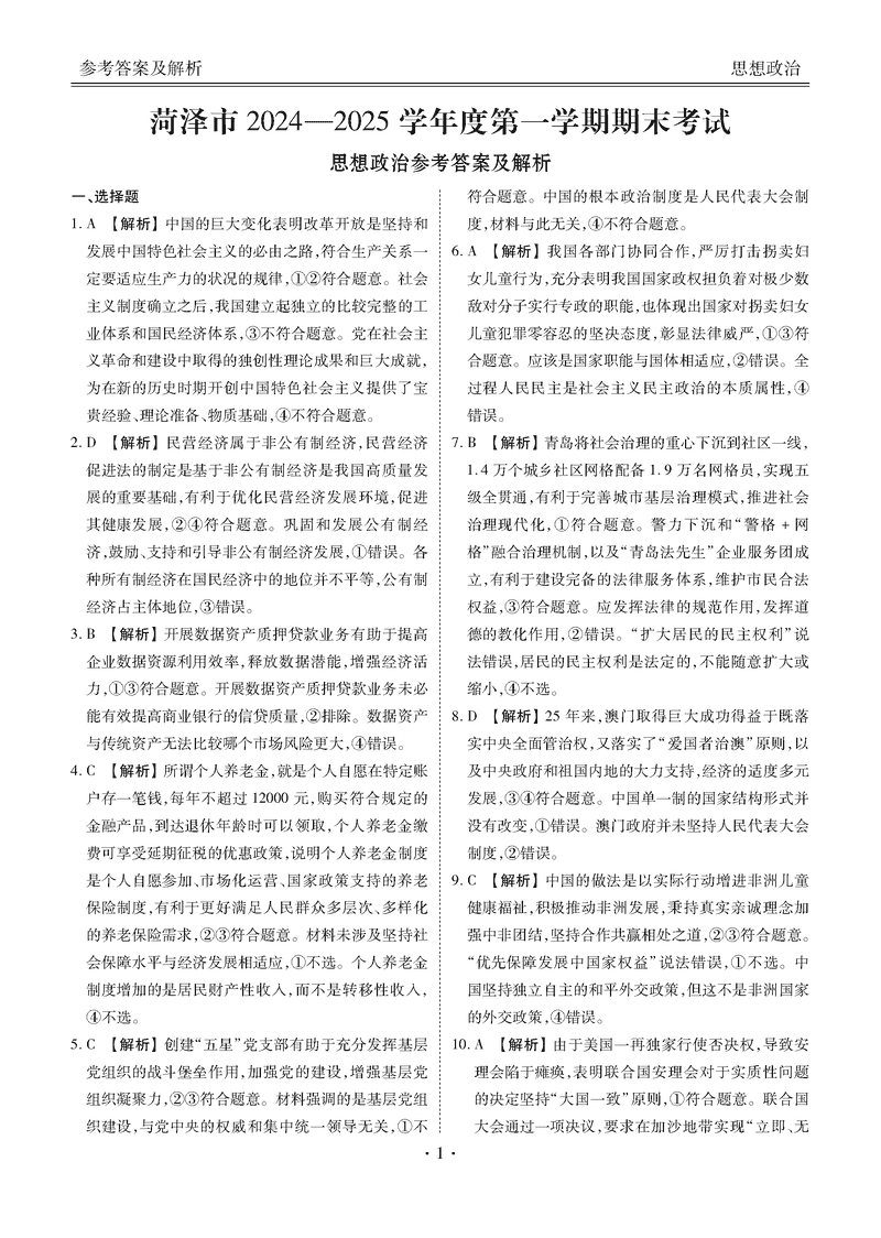 山东菏泽2024-2025学年高三上学期1月期末政治试题及答案