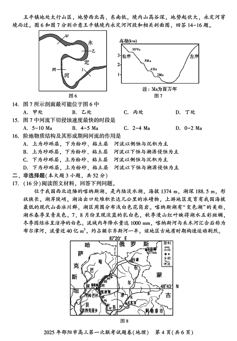 湖南邵阳2025年高三上学期期末地理试题及答案
