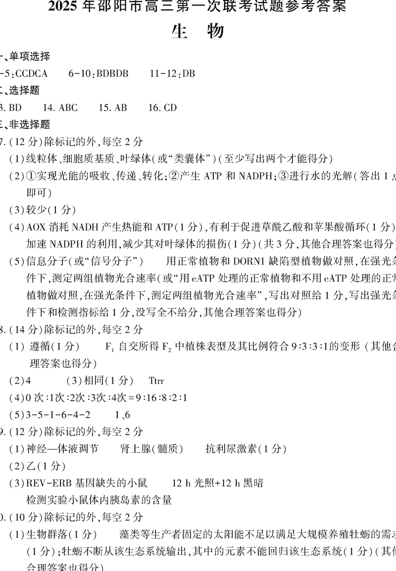 湖南邵阳2025年高三上学期期末生物考试已于近日开考,为方便考生考后及时查看考试情况,查漏补缺、弥补不足,本文整理了试题答案解析相关信息!