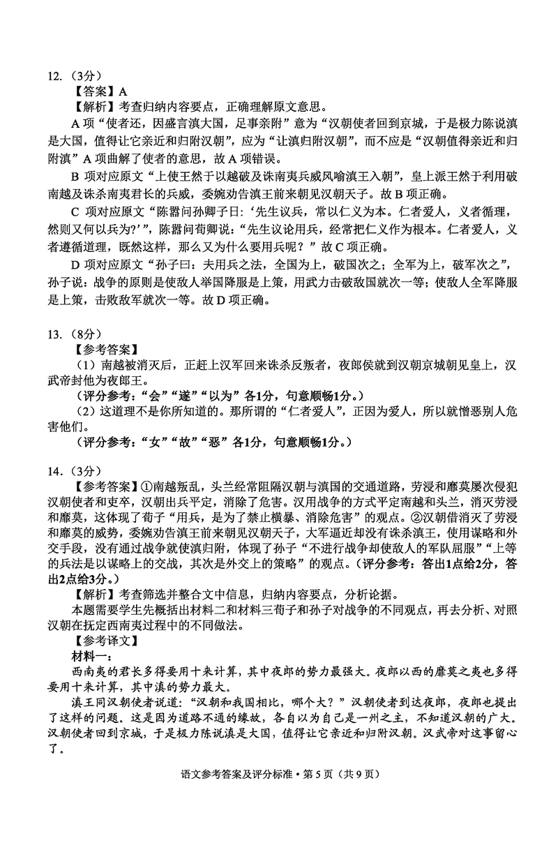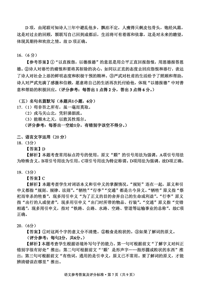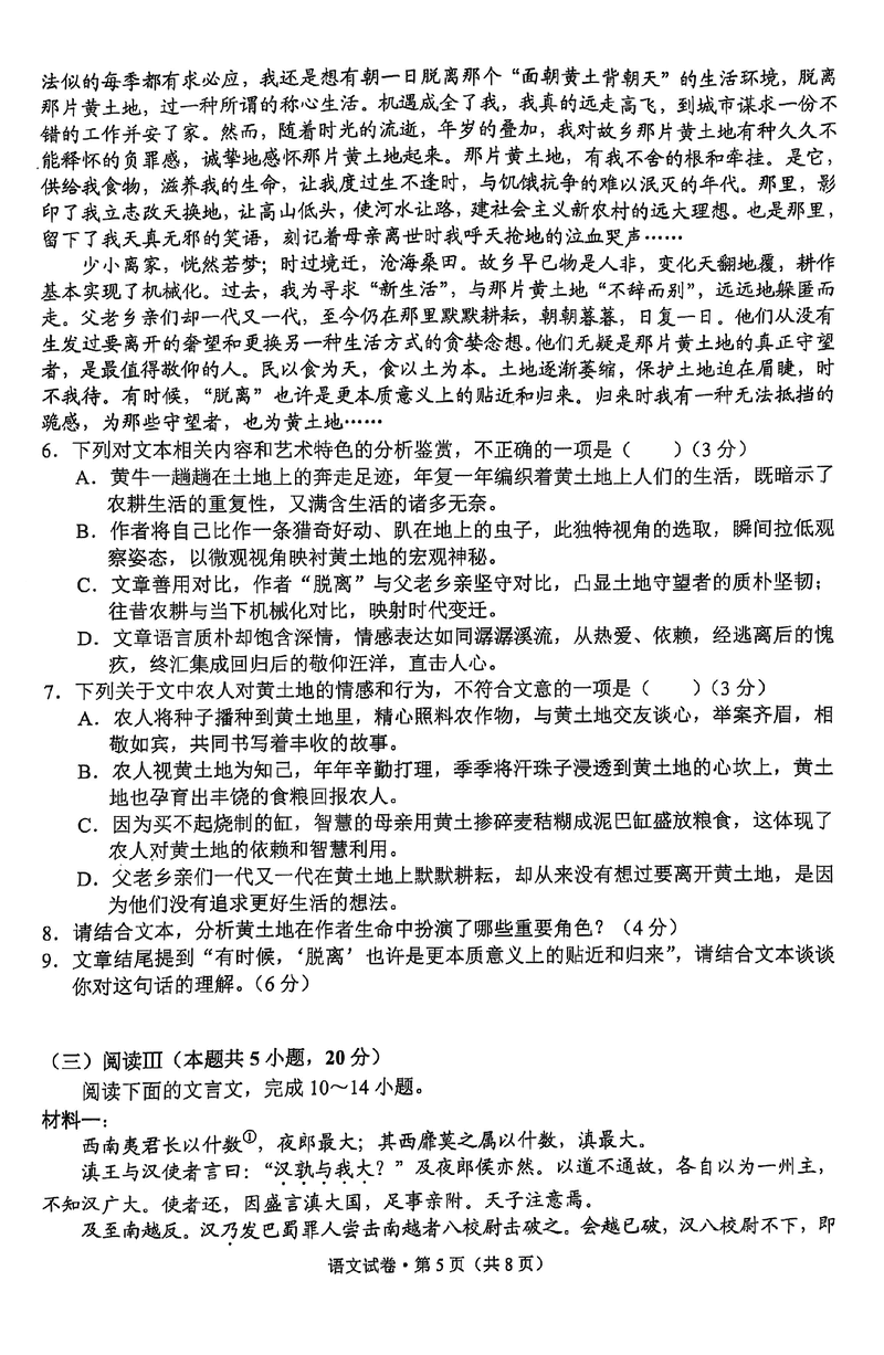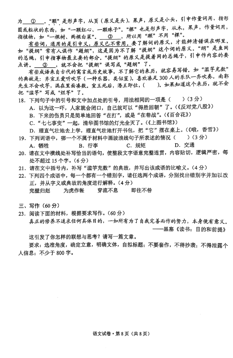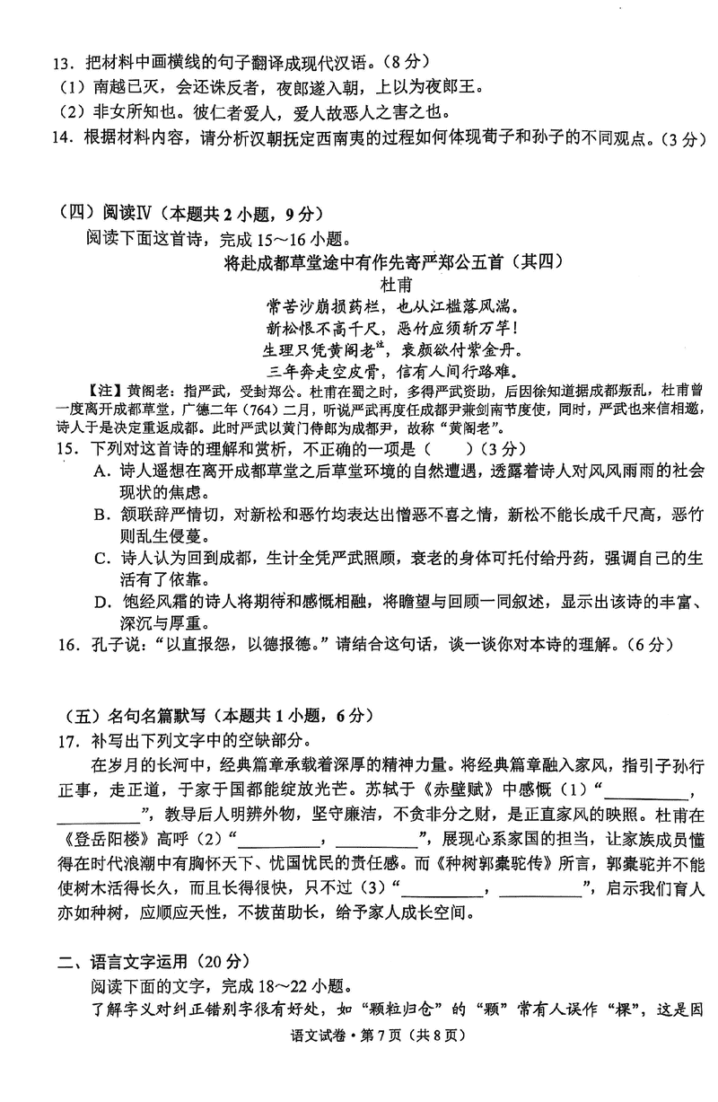 云南 语文试题
