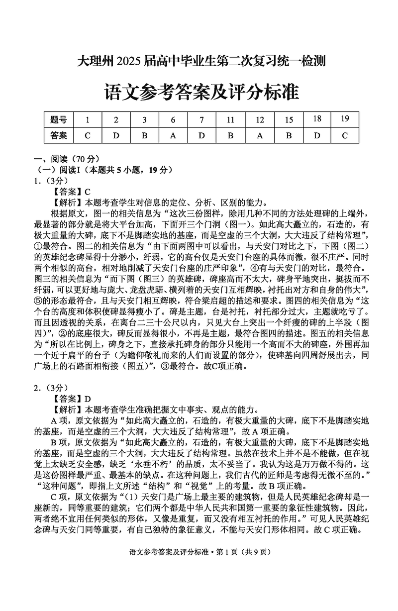 云南大理2025届高三第二次复习统测语文考试已于近日开考,为方便考生考后及时查看考试情况,查漏补缺、弥补不足,本文整理了试题答案解析相关信息!