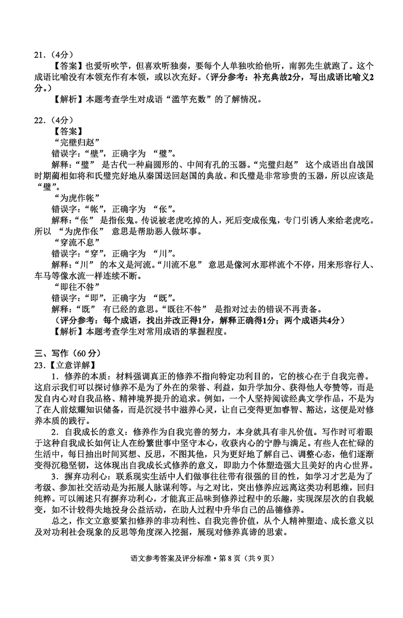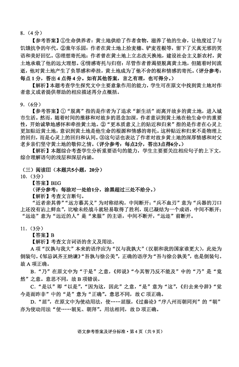 语文试题及答案解析