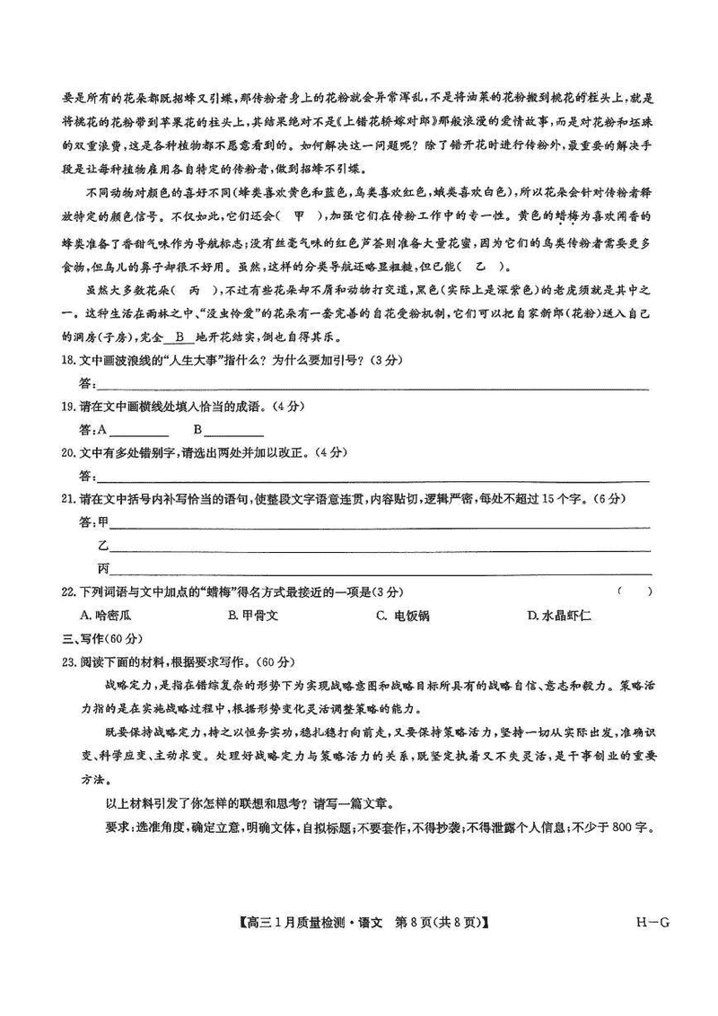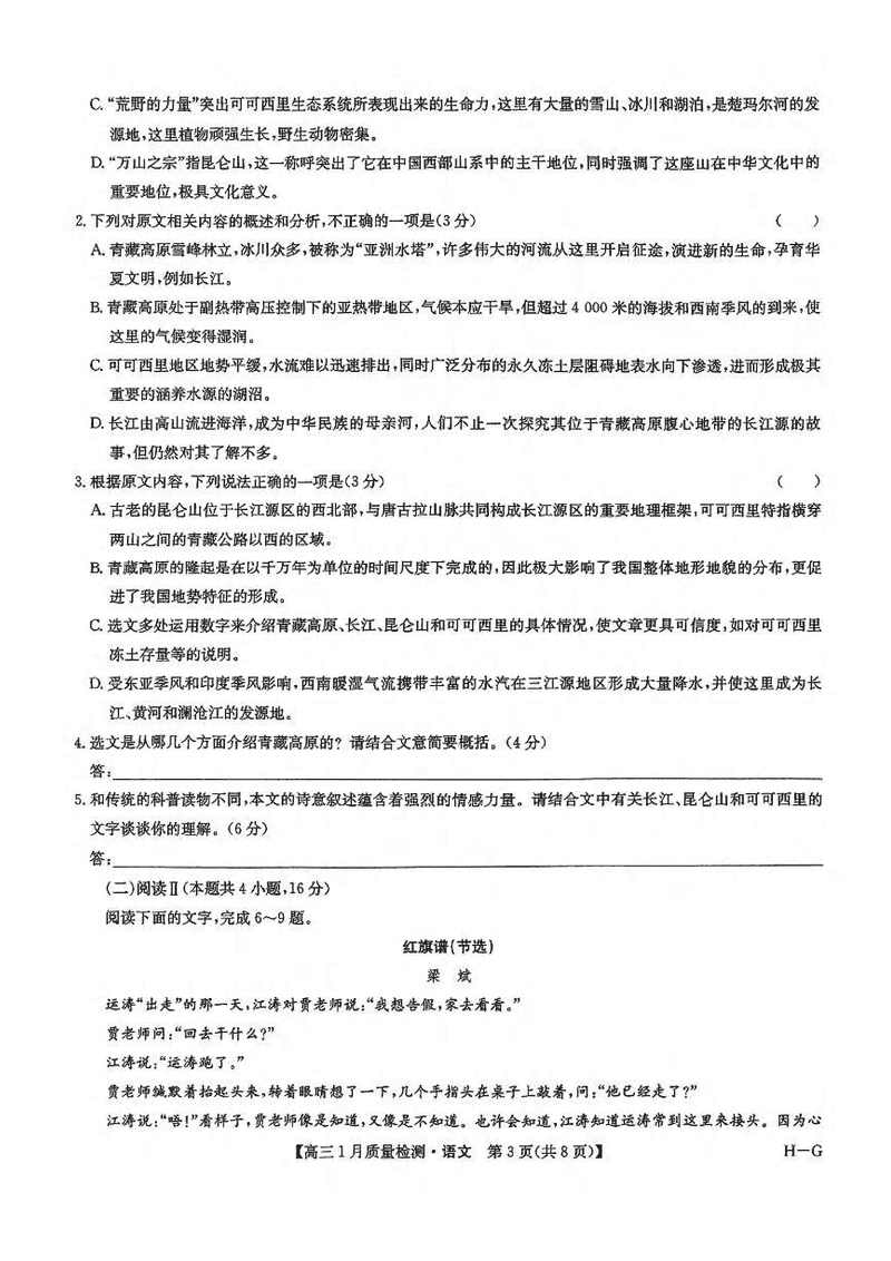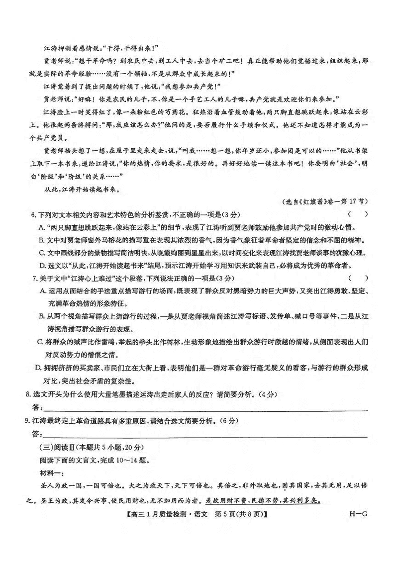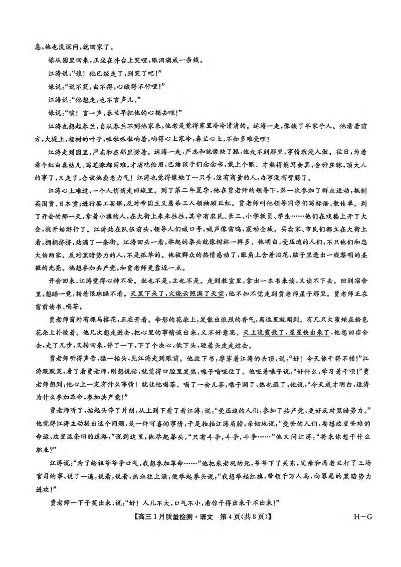 九师联盟2025届高三1月质量检测G语文试题及答案 时间:2025-01-24 语文试题 九师联盟2025届高三1月质量检测G语文考试已于近日开考,为方便考生考后及时查看考试情况,查漏补缺、弥补不足,本文整理了试题答案解析相关信息! 汇总:九师联盟2025届高三1月质量检测G试题及答案汇总 语文试题及答案解析