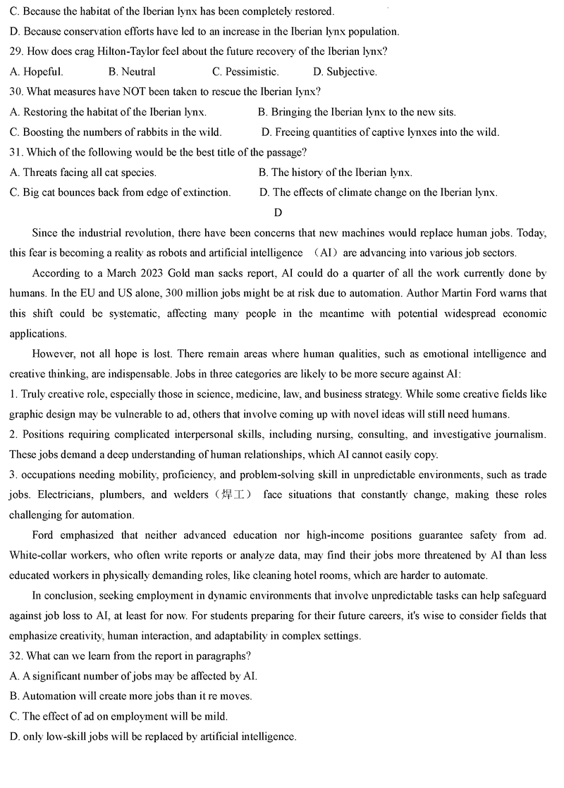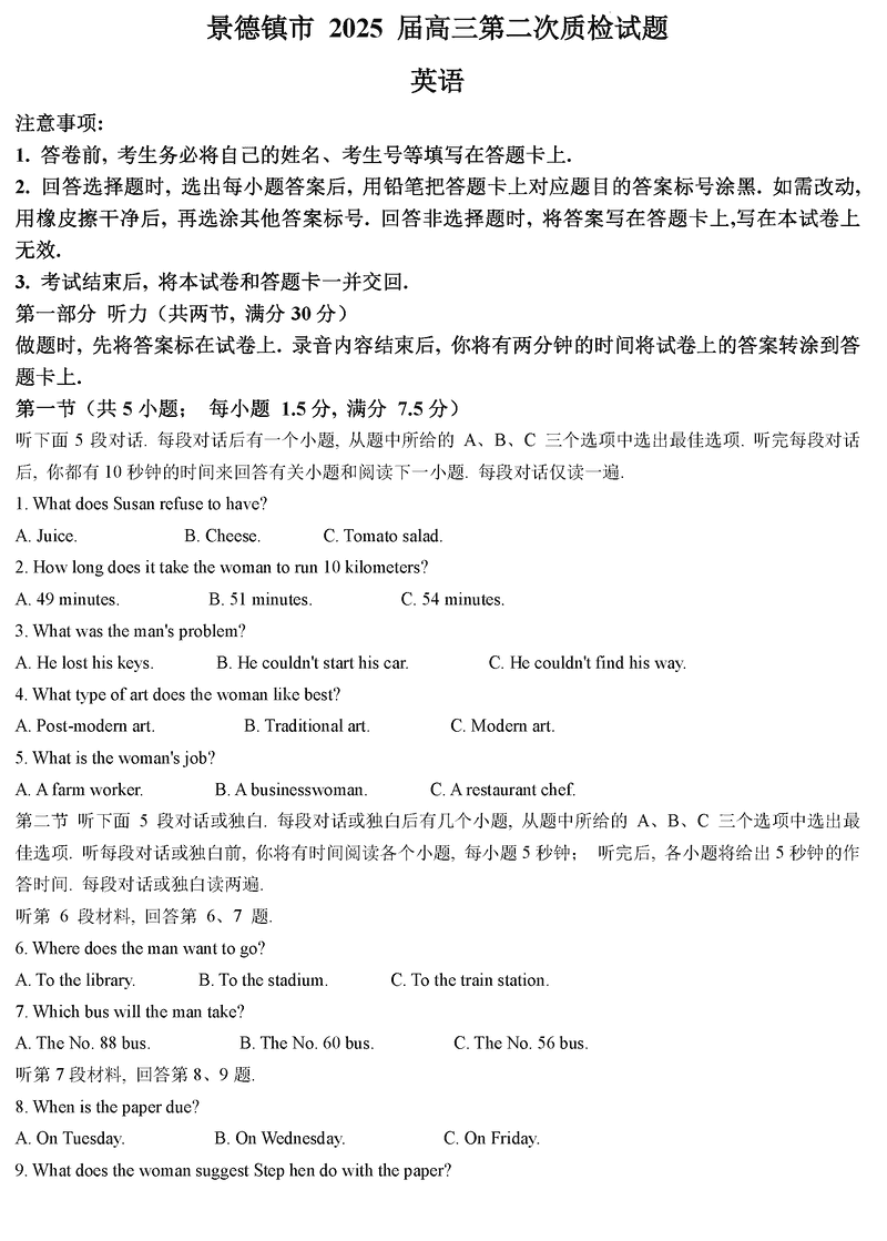 江西景德镇2025届高三上学期第二次质检英语考试已于近日开考,为方便考生考后及时查看考试情况,查漏补缺、弥补不足,本文整理了试题答案解析相关信息!