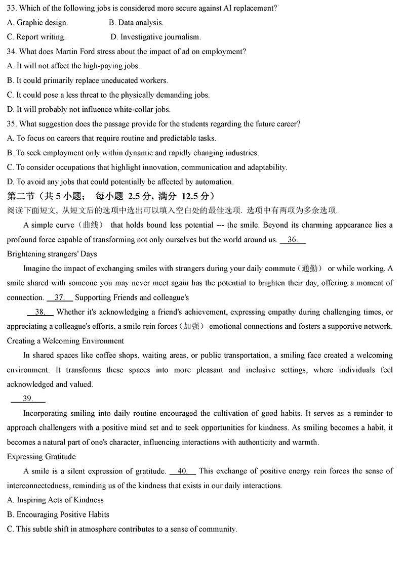 江西景德镇2025届高三上学期第二次质检英语试题及答案
