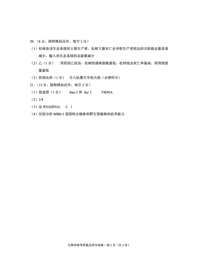 昆明三诊一模2025届高三摸底诊断生物试题及答案