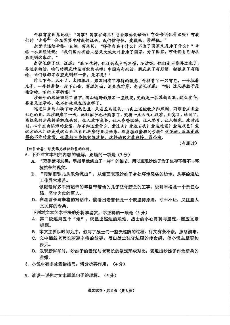 语文试题及答案解析