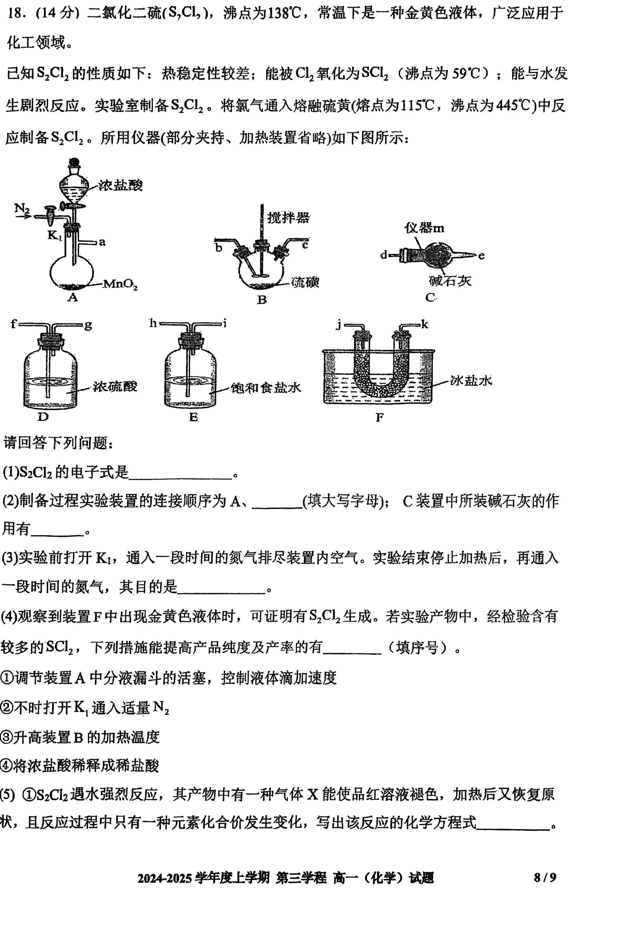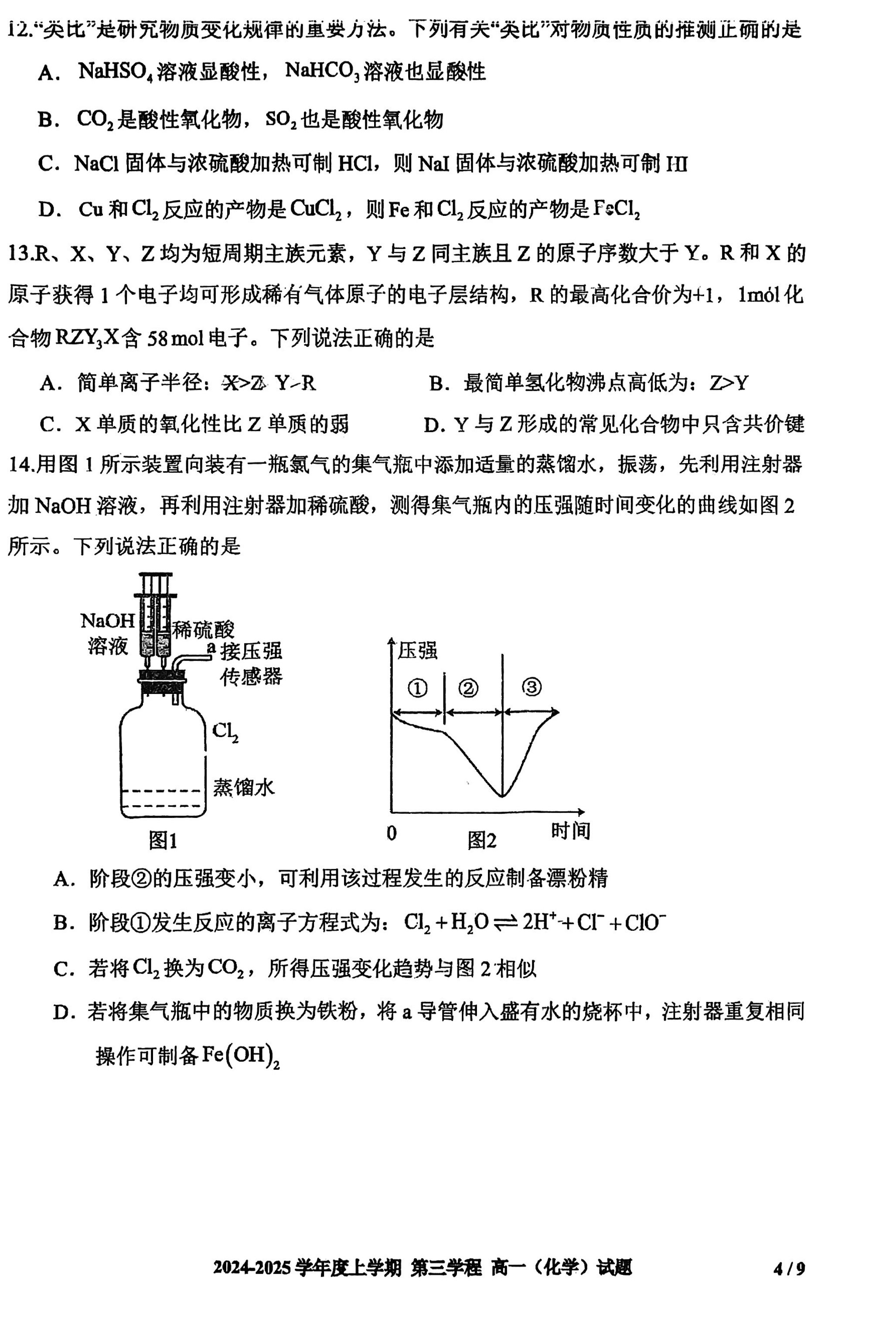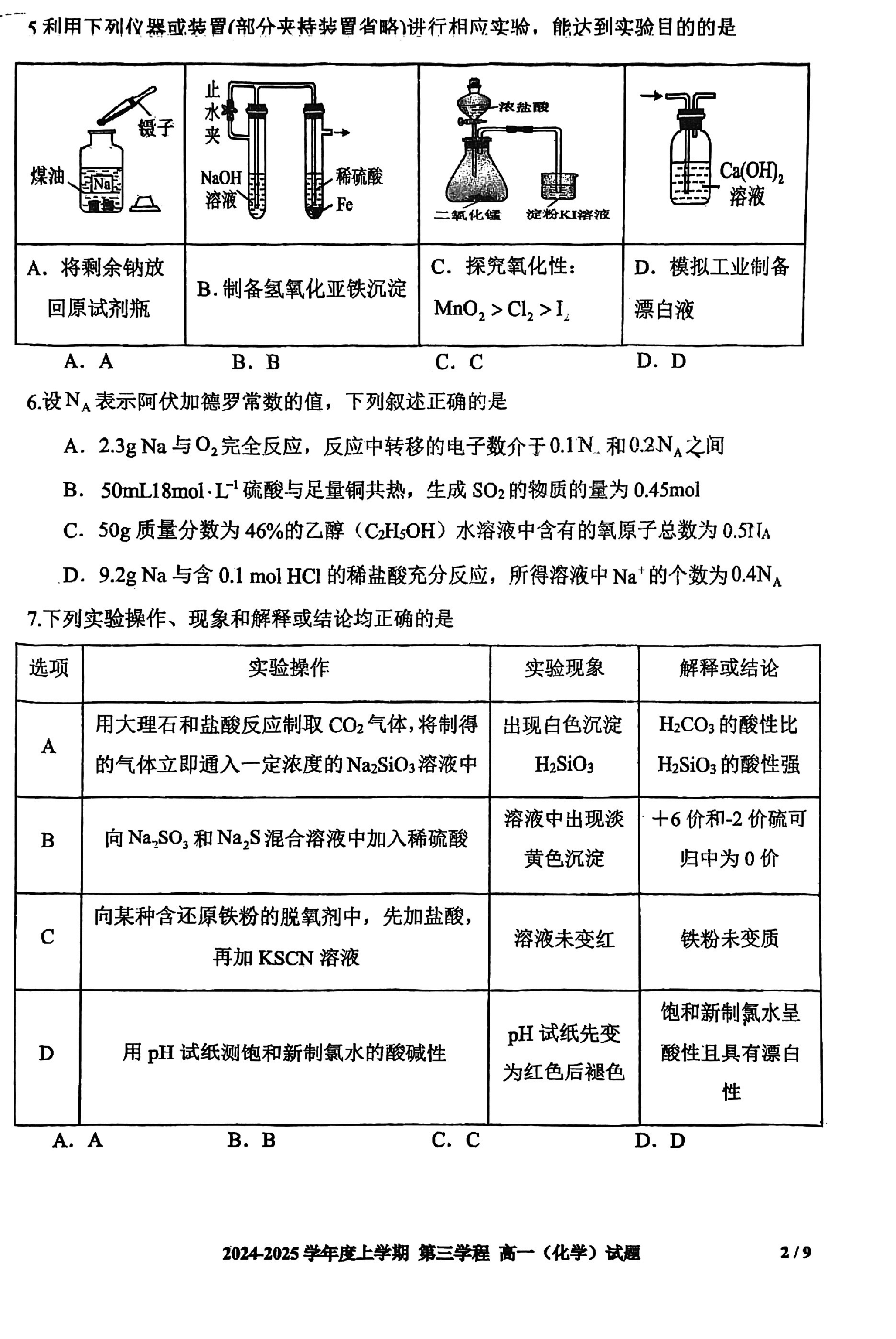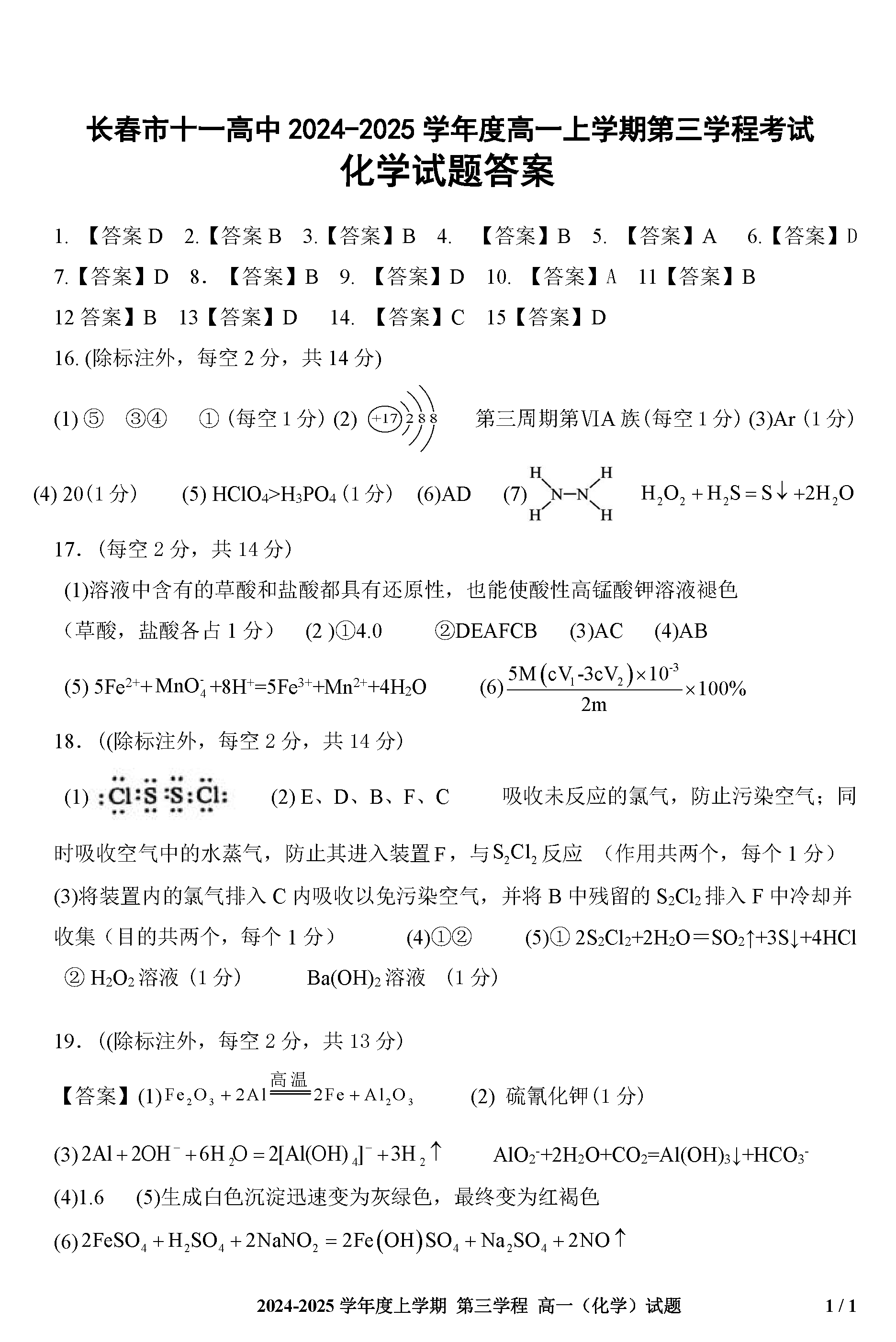 长春十一高中2024-2025学年高一上学期第三学程考化学试题及答案 时间:2025-01-27 吉林 高中化学 长春十一高中2024-2025学年高一上学期第三学程考化学考试已于近日开考,为方便考生考后及时查看考试情况,查漏补缺、弥补不足,本文整理了试题答案解析相关信息! 化学试题及答案解析