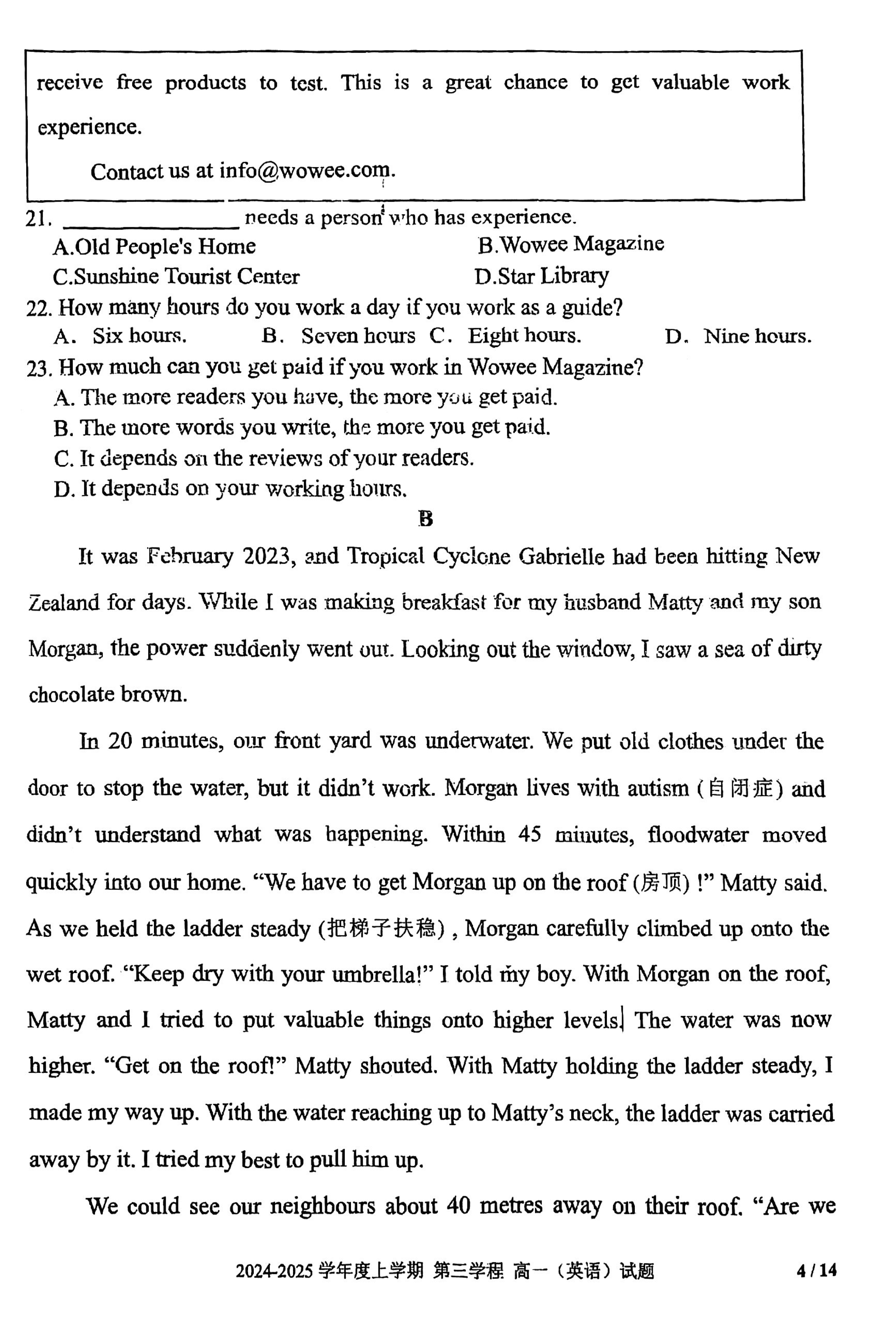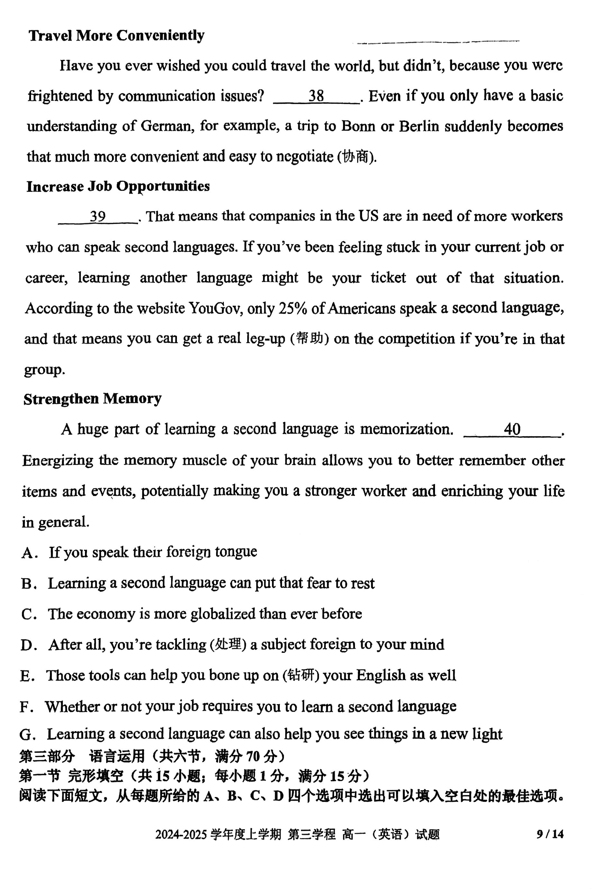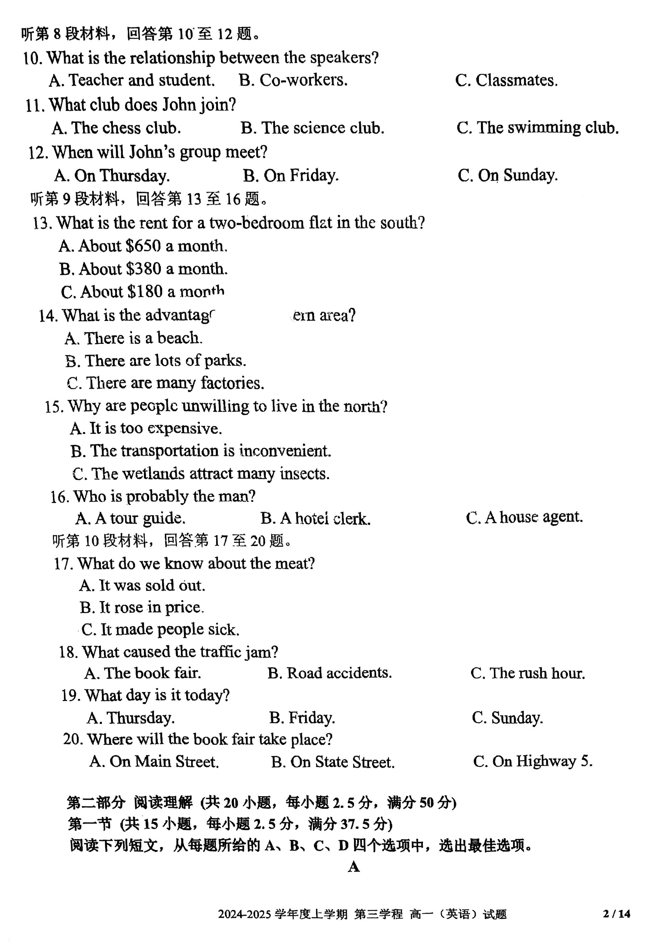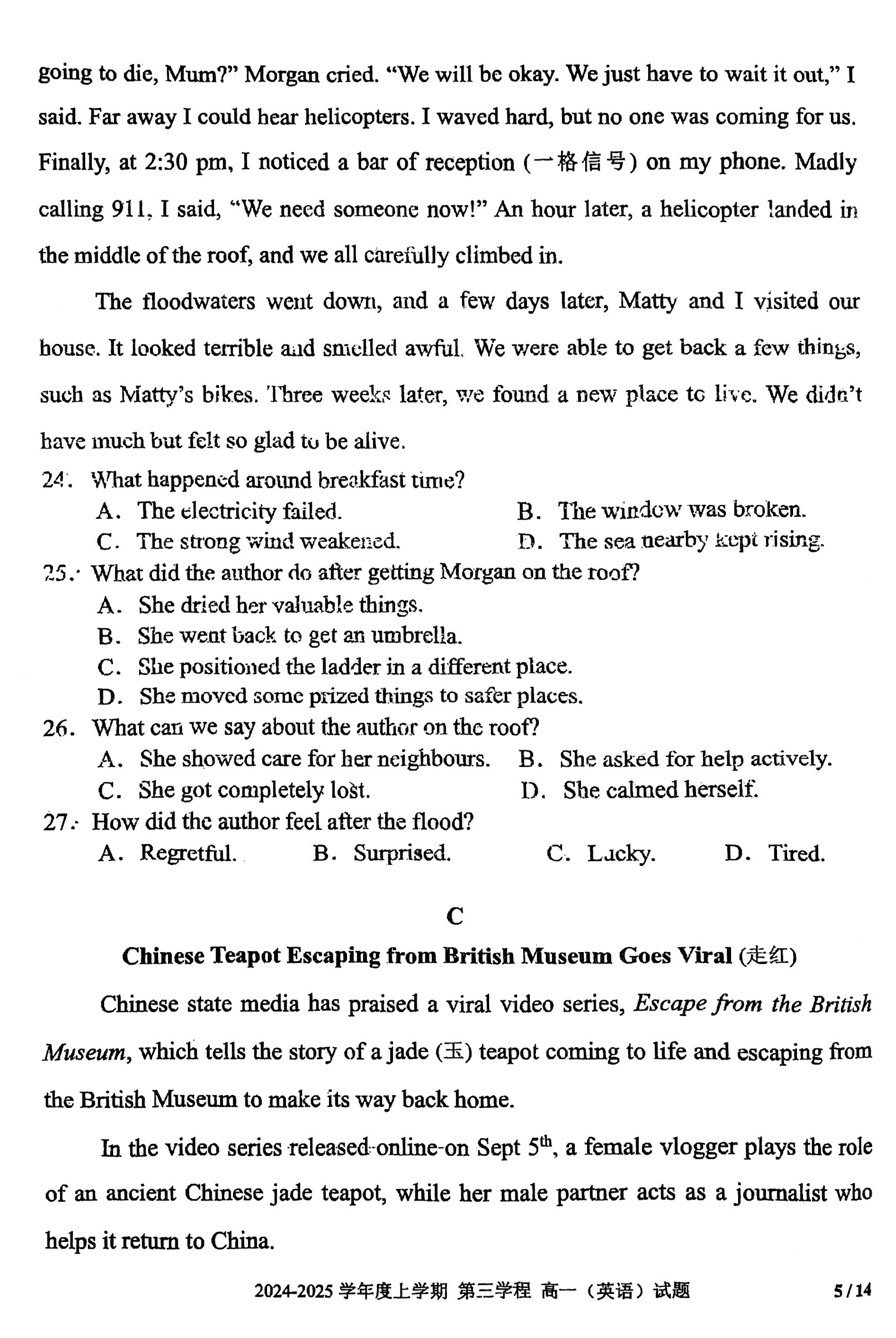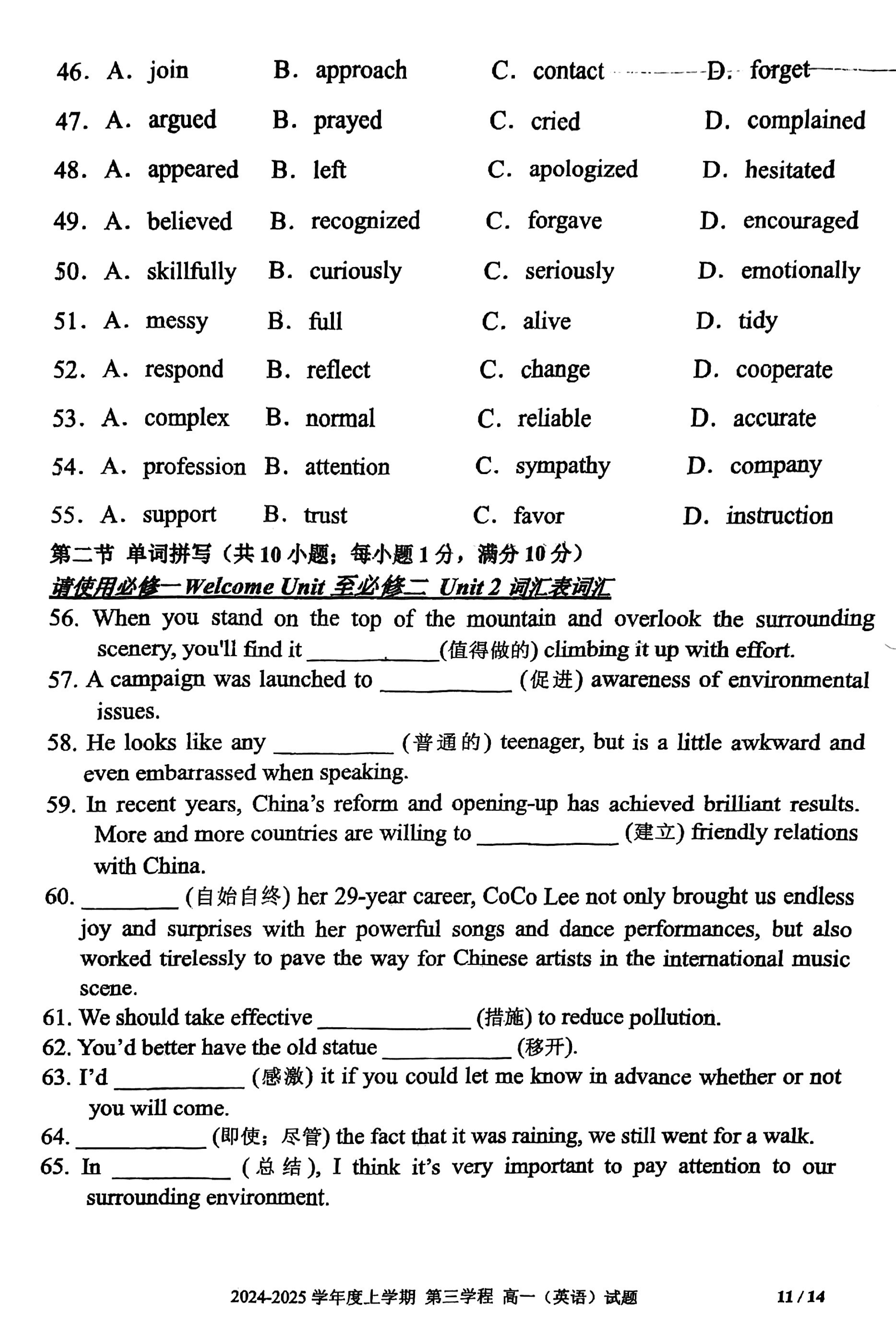 长春十一高中2024-2025学年高一上学期第三学程考英语试题及答案 时间:2025-01-27 吉林 高中英语 长春十一高中2024-2025学年高一上学期第三学程考英语考试已于近日开考,为方便考生考后及时查看考试情况,查漏补缺、弥补不足,本文整理了试题答案解析相关信息! 英语试题及答案解析