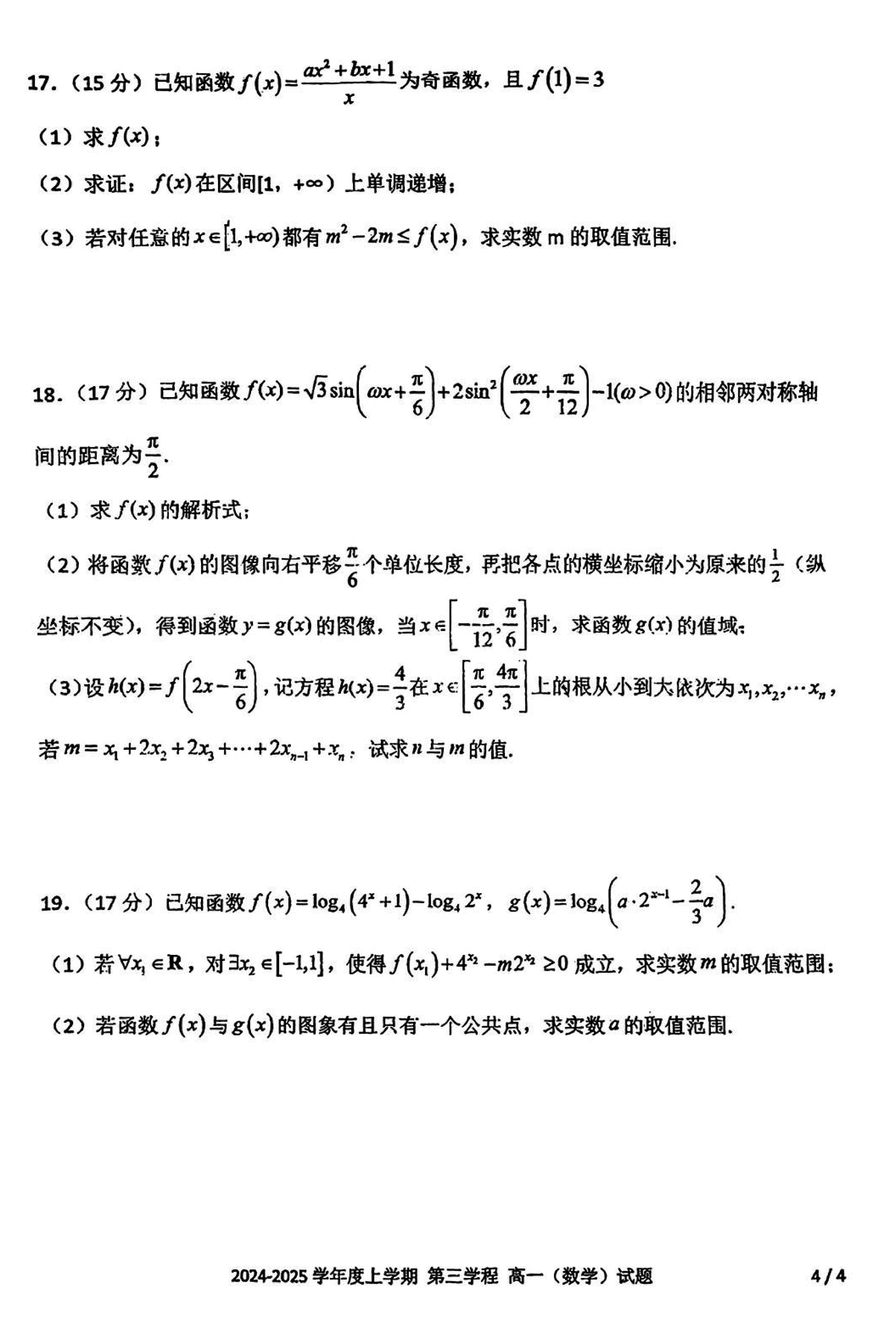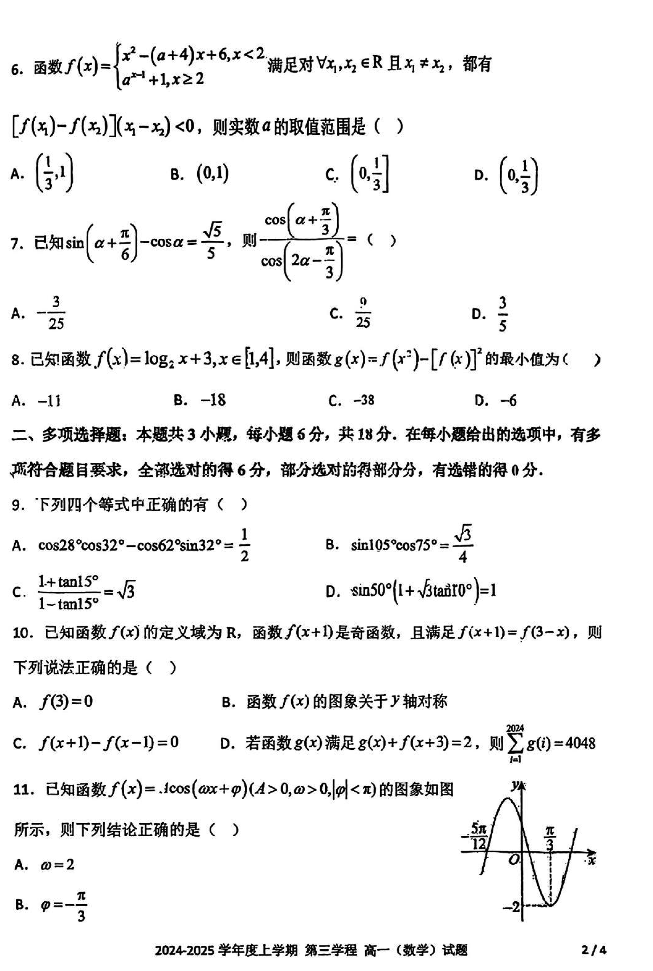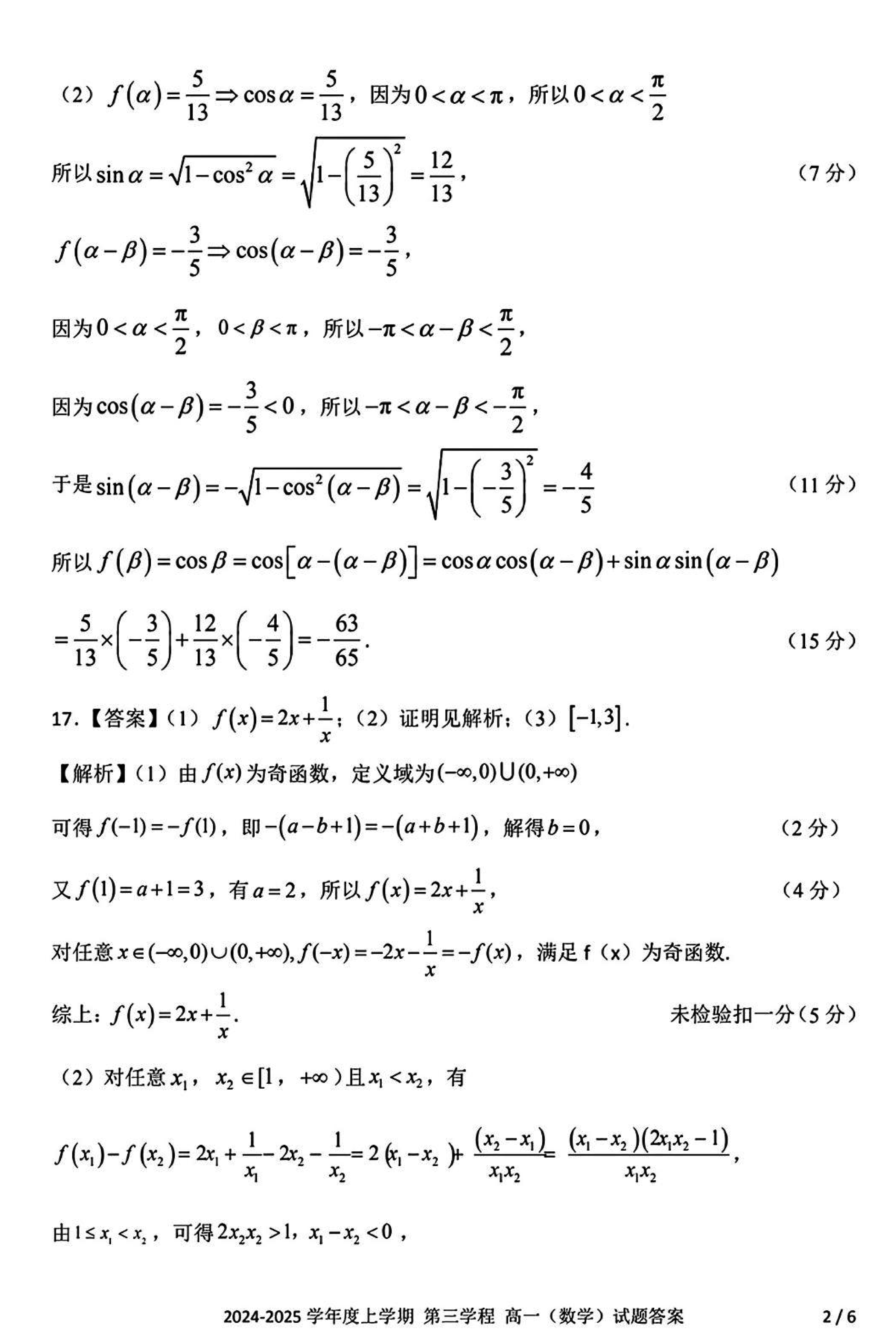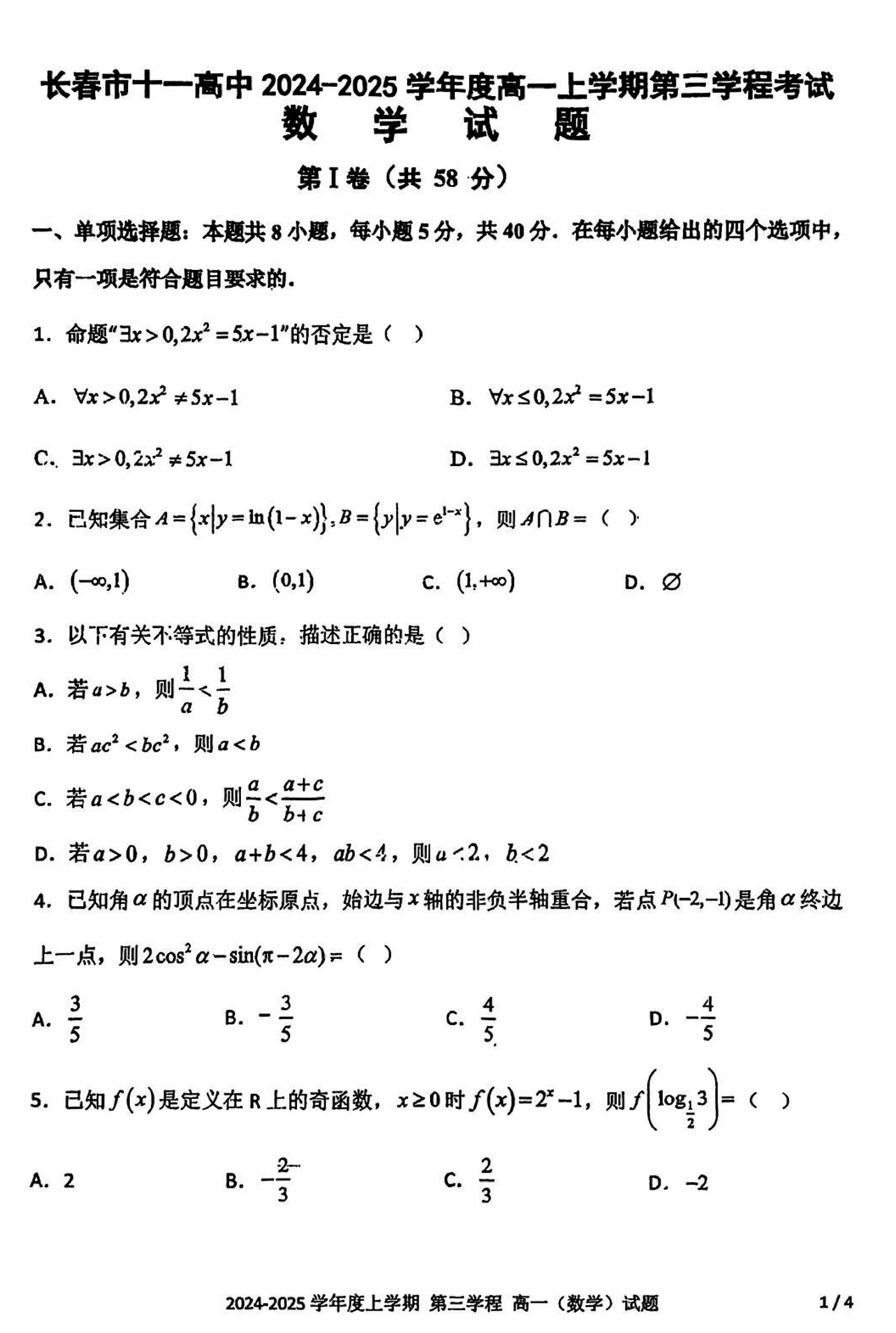 长春十一高中2024-2025学年高一上学期第三学程考数学试题及答案 时间:2025-01-27 吉林 高中数学 长春十一高中2024-2025学年高一上学期第三学程考数学考试已于近日开考,为方便考生考后及时查看考试情况,查漏补缺、弥补不足,本文整理了试题答案解析相关信息! 数学试题及答案解析