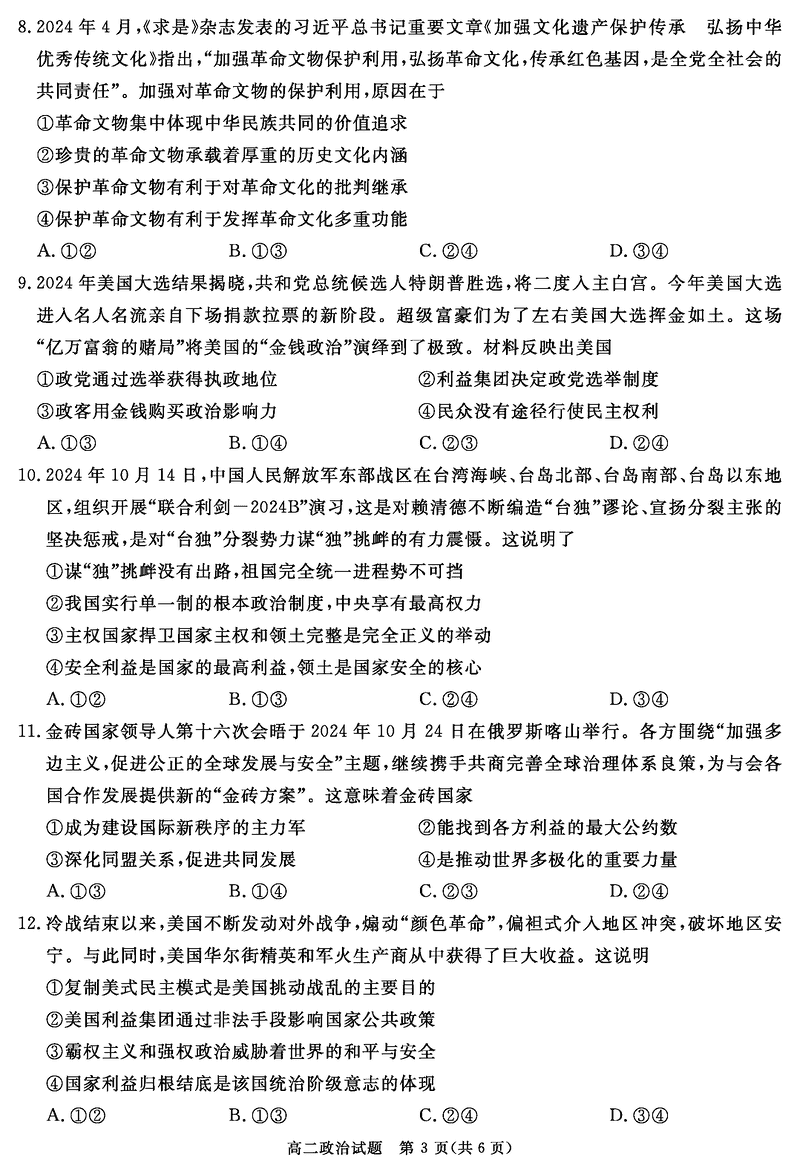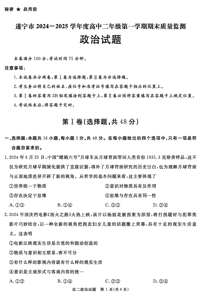 四川遂宁2024-2025学年高二上学期期末政治试题及答案 时间:2025-01-27 四川 高中政治 四川遂宁2024-2025学年高二上学期期末政治考试已于近日开考,为方便考生考后及时查看考试情况,查漏补缺、弥补不足,本文整理了试题答案解析相关信息! 政治试题及答案解析