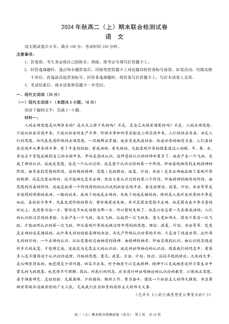 重庆康德2024年秋高二上学期期末语文试题及答案 时间:2025-01-27 重庆 高中语文 重庆康德2024年秋高二上学期期末语文考试已于近日开考,为方便考生考后及时查看考试情况,查漏补缺、弥补不足,本文整理了试题答案解析相关信息! 语文试题及答案解析