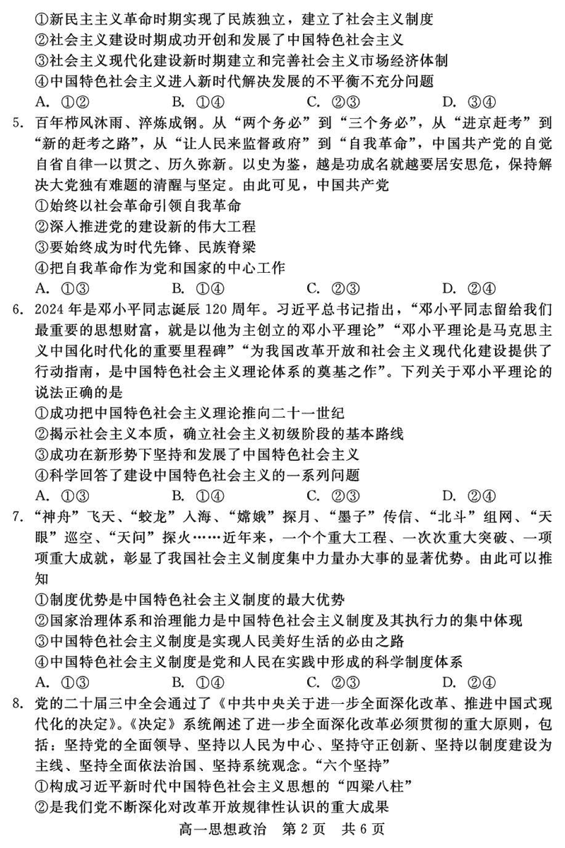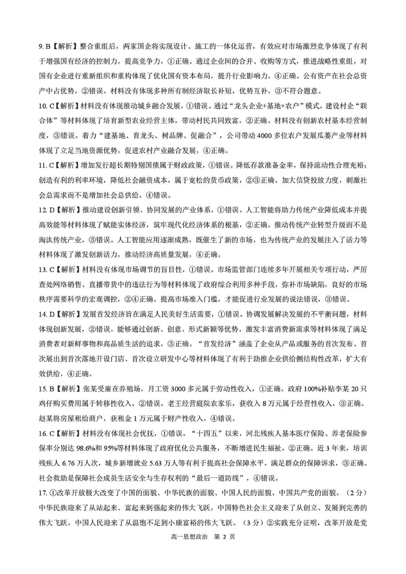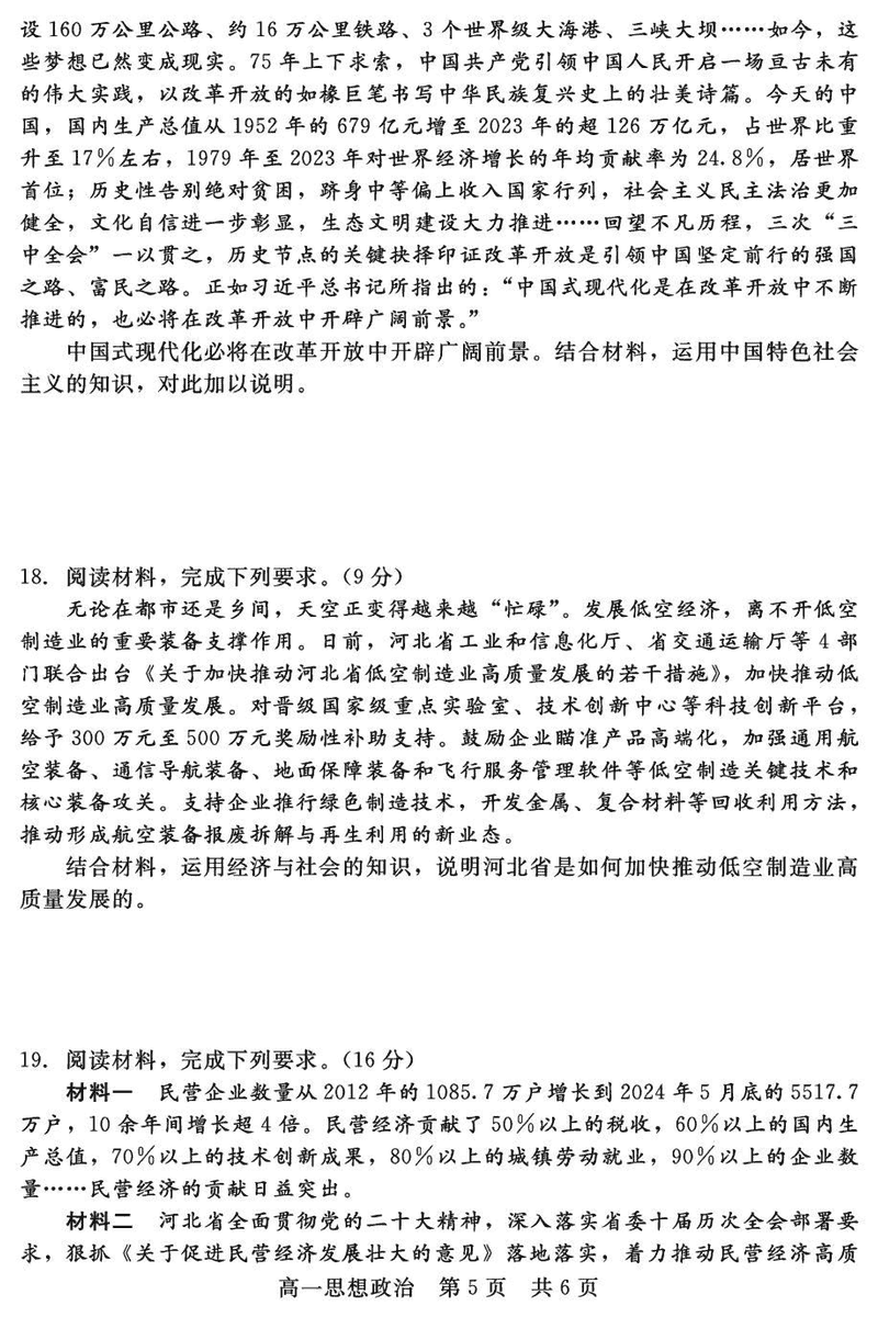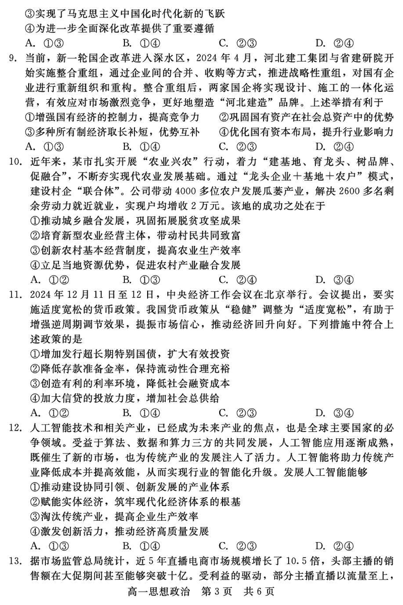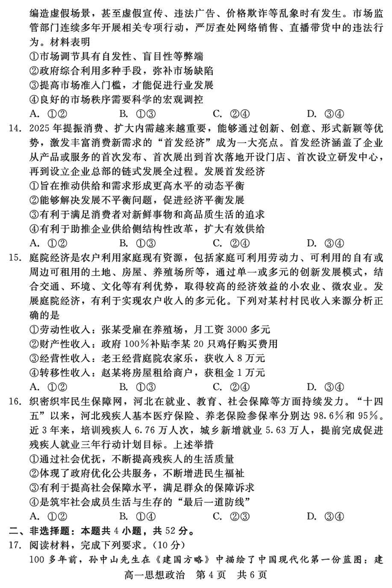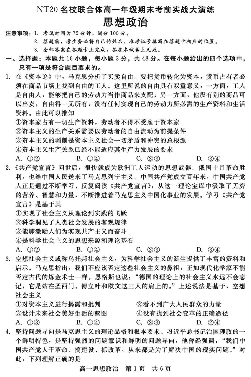 邯郸NT20名校联合体2024-2025学年高一上学期期末考前实战大演练政治试题及答案