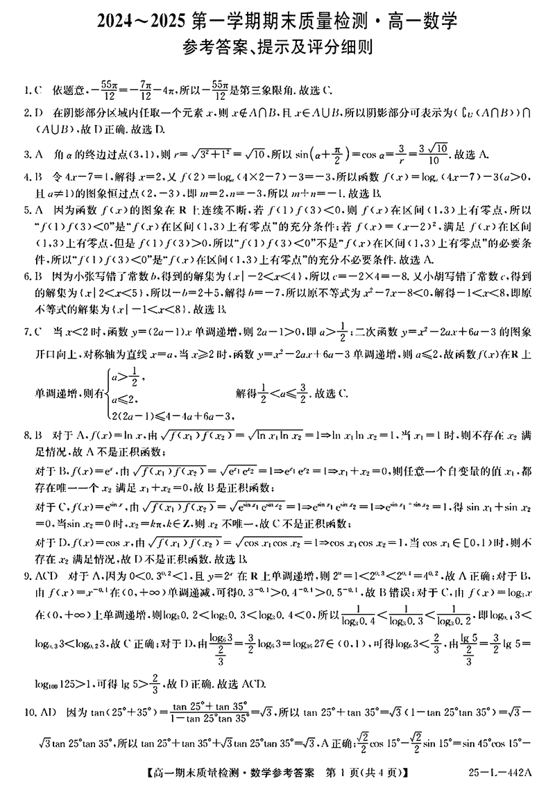 陕西榆林八校联考2024-2025学年高一上学期1月期末数学试题及答案 时间:2025-01-27 陕西 高中数学 陕西省榆林市八校联考2024-2025学年高一上学期1月期末数学考试已于近日开考,为方便考生考后及时查看考试情况,查漏补缺、弥补不足,本文整理了试题答案解析相关信息! 数学试题及答案解析