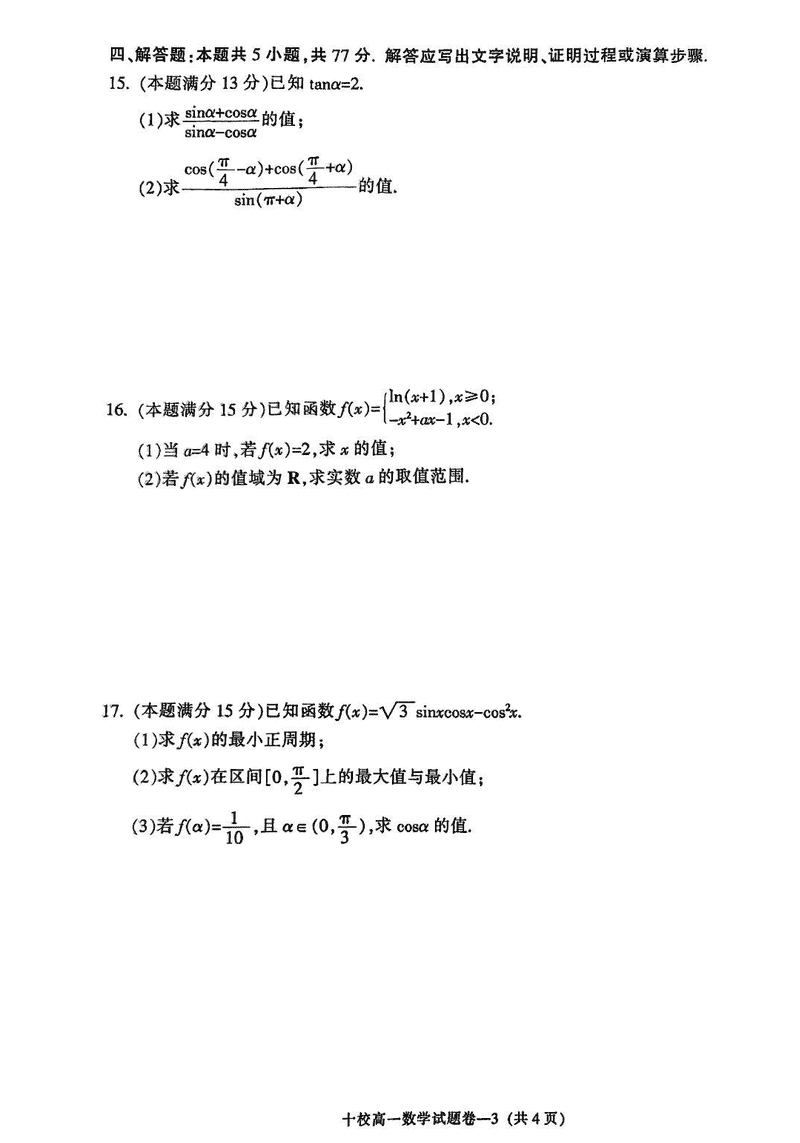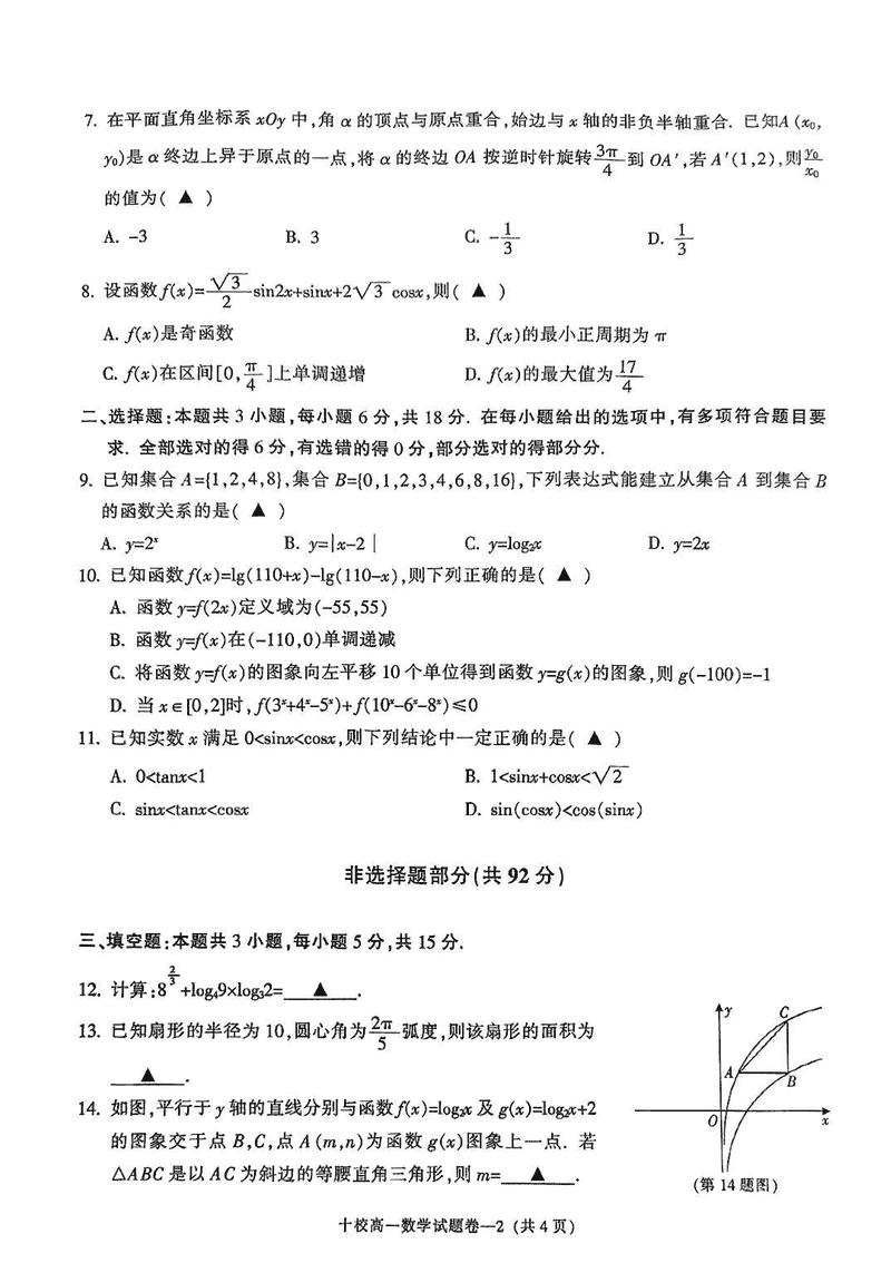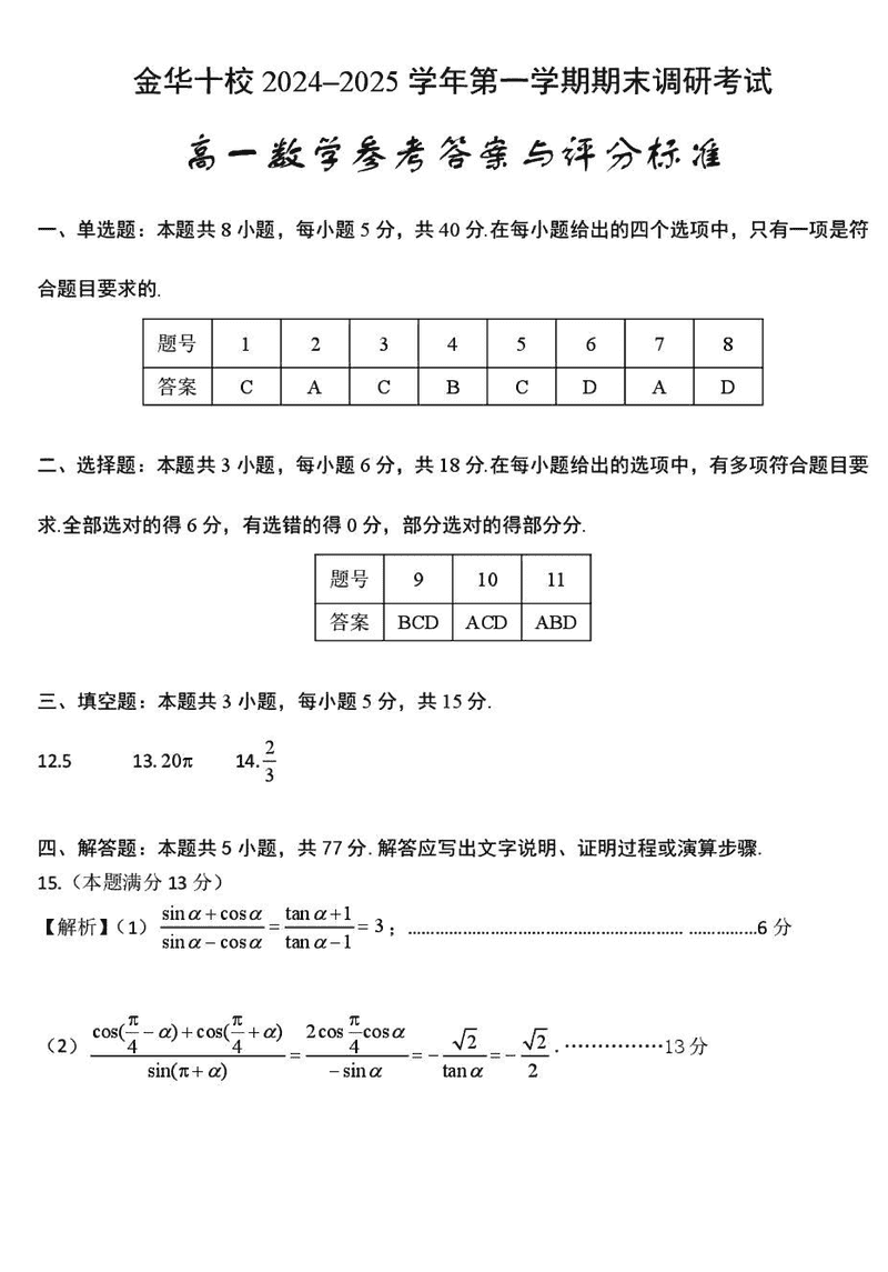 浙江金华十校2024-2025学年高一上学期期末调研数学试题及答案 时间:2025-01-27 浙江 高中数学 浙江省金华十校2024-2025学年高一上学期期末调研数学考试已于近日开考,为方便考生考后及时查看考试情况,查漏补缺、弥补不足,本文整理了试题答案解析相关信息! 数学试题及答案解析