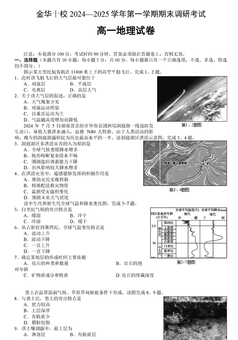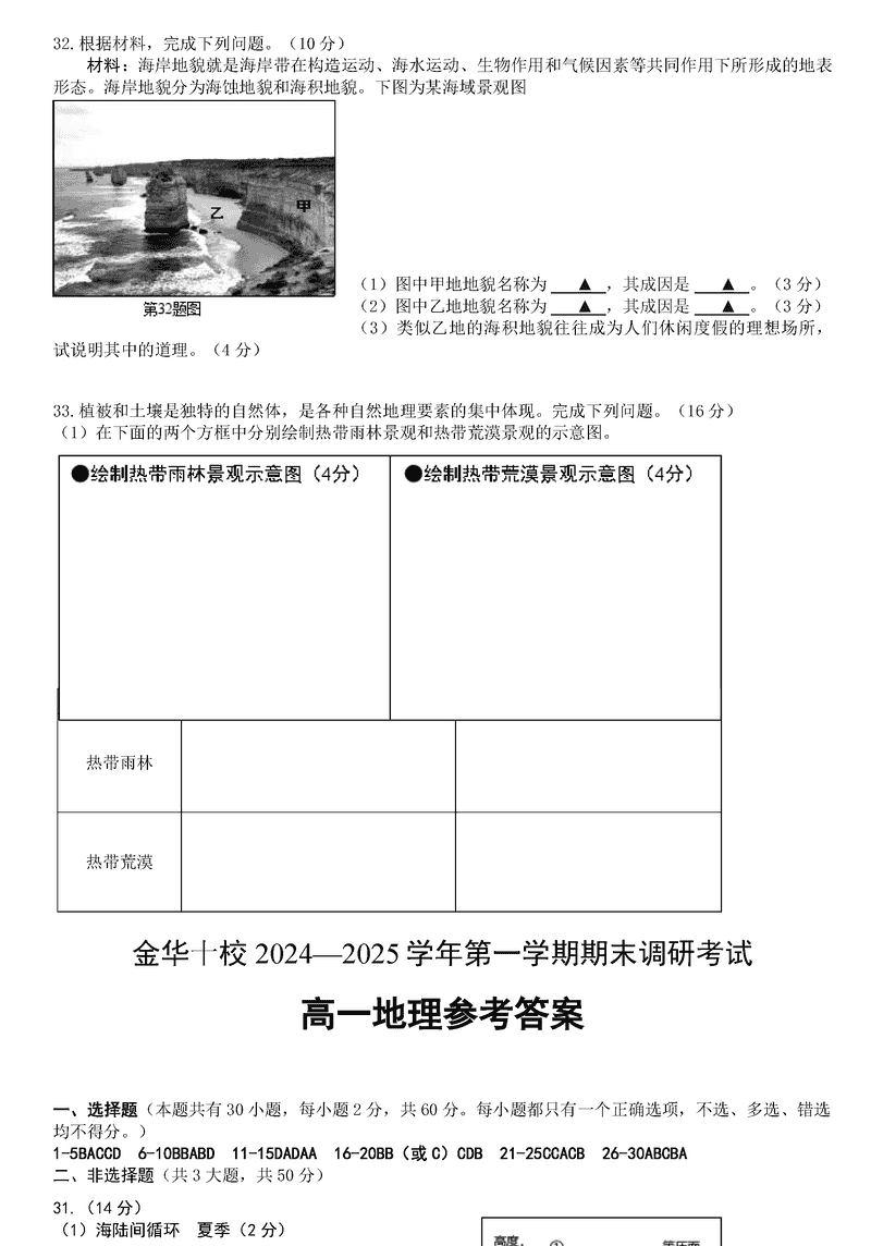 浙江金华十校2024-2025学年高一上学期期末调研地理试题及答案 时间:2025-01-27 浙江 高中地理 浙江省金华十校2024-2025学年高一上学期期末调研地理考试已于近日开考,为方便考生考后及时查看考试情况,查漏补缺、弥补不足,本文整理了试题答案解析相关信息! 地理试题及答案解析