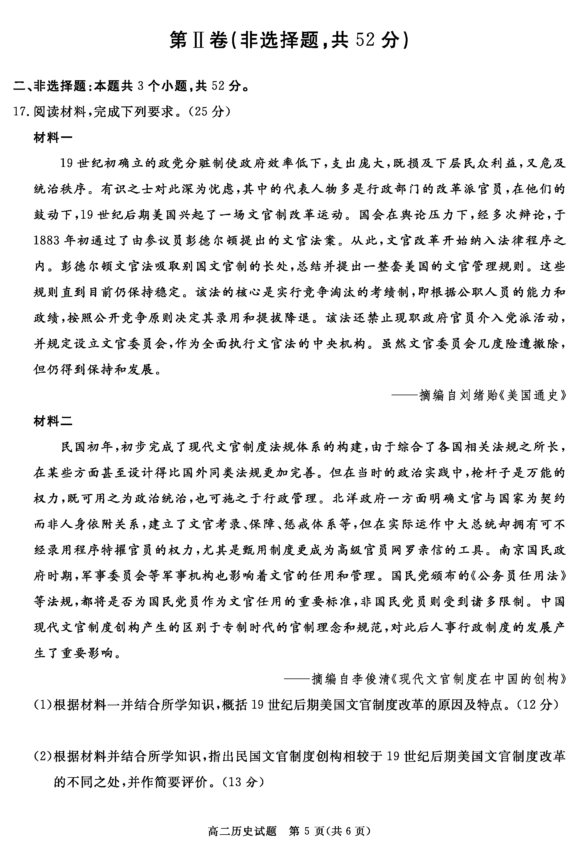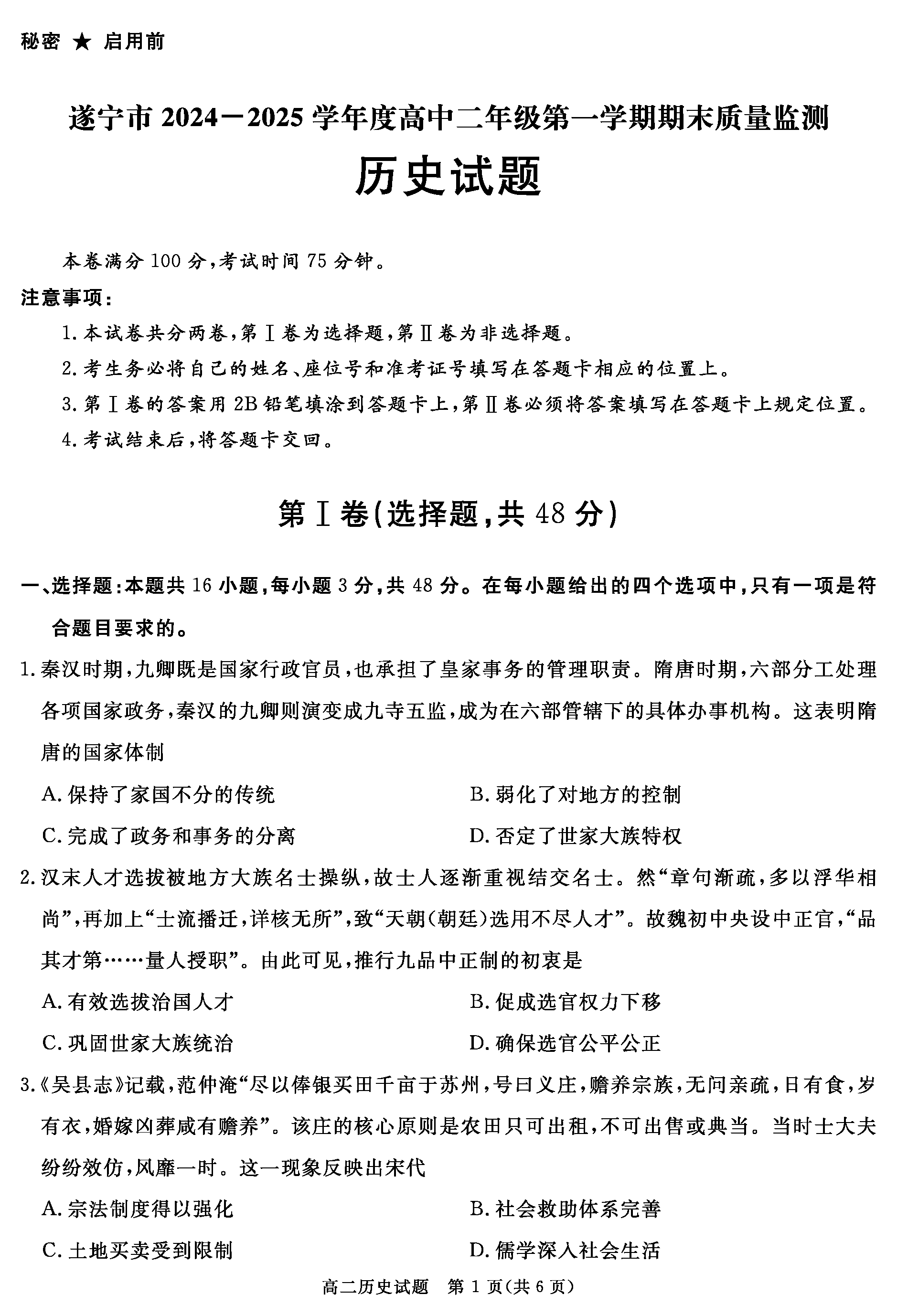 自贡市、遂宁市、广安市等2024-2025学年高二上学期期末历史试题及答案