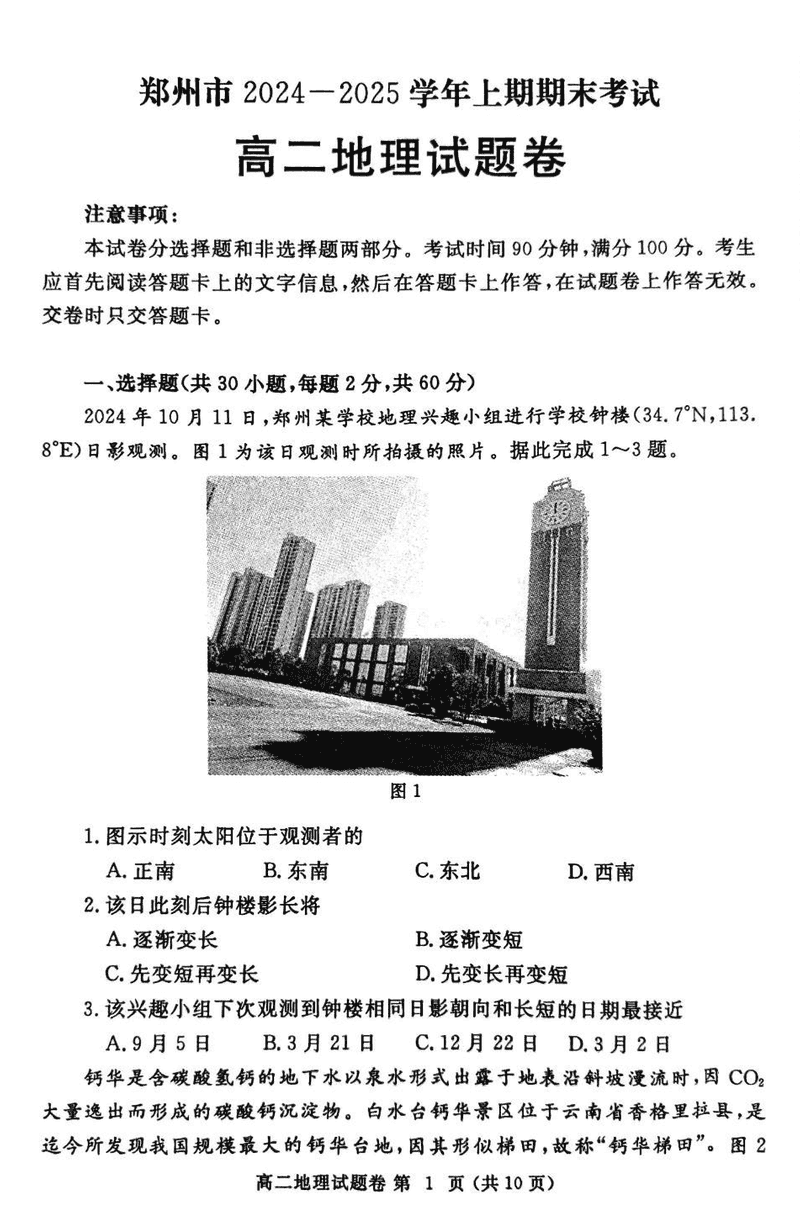 河南郑州2024-2025学年高二上学期期末地理试题及答案 时间:2025-01-27 河南 高中地理 四川遂宁2024-2025学年高二上学期期末地理考试已于近日开考,为方便考生考后及时查看考试情况,查漏补缺、弥补不足,本文整理了试题答案解析相关信息! 地理试题及答案解析