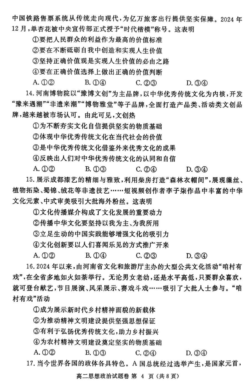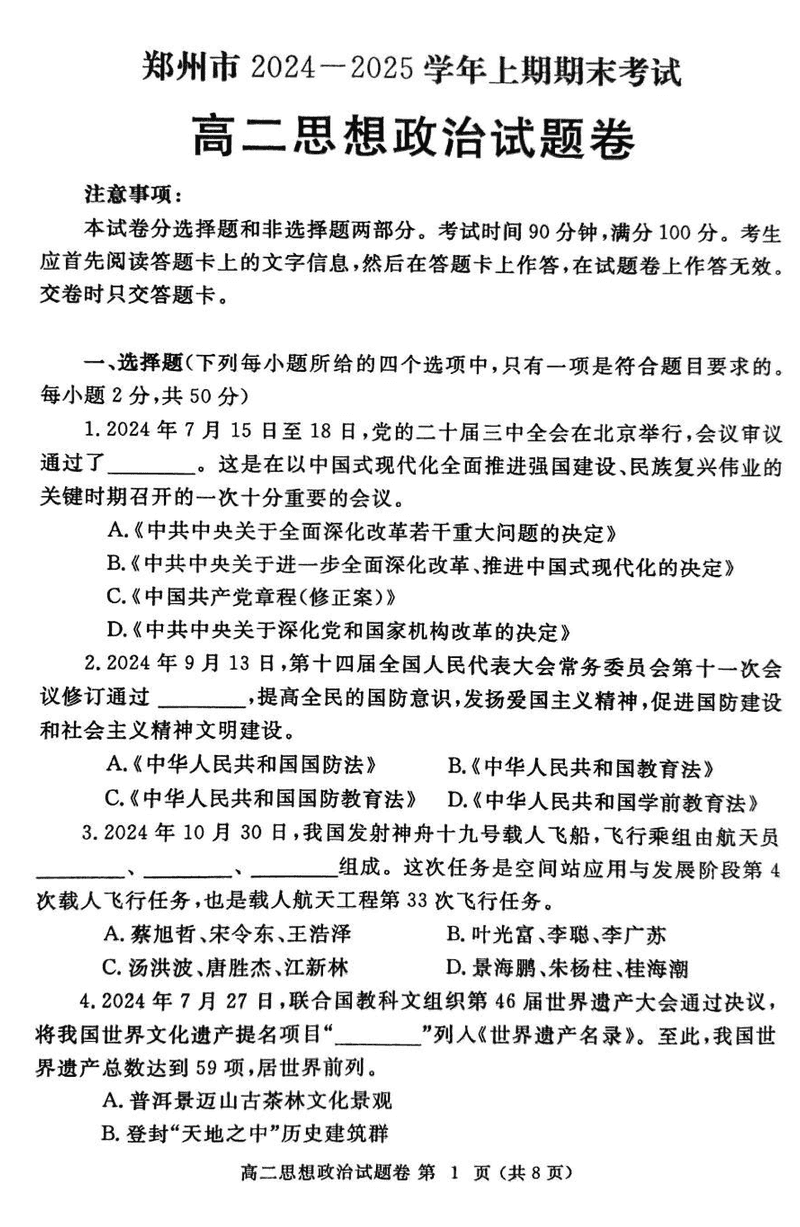 河南郑州2024-2025学年高二上学期期末政治试题及答案 时间:2025-01-27 河南 高中政治 四川遂宁2024-2025学年高二上学期期末政治考试已于近日开考,为方便考生考后及时查看考试情况,查漏补缺、弥补不足,本文整理了试题答案解析相关信息! 政治试题及答案解析