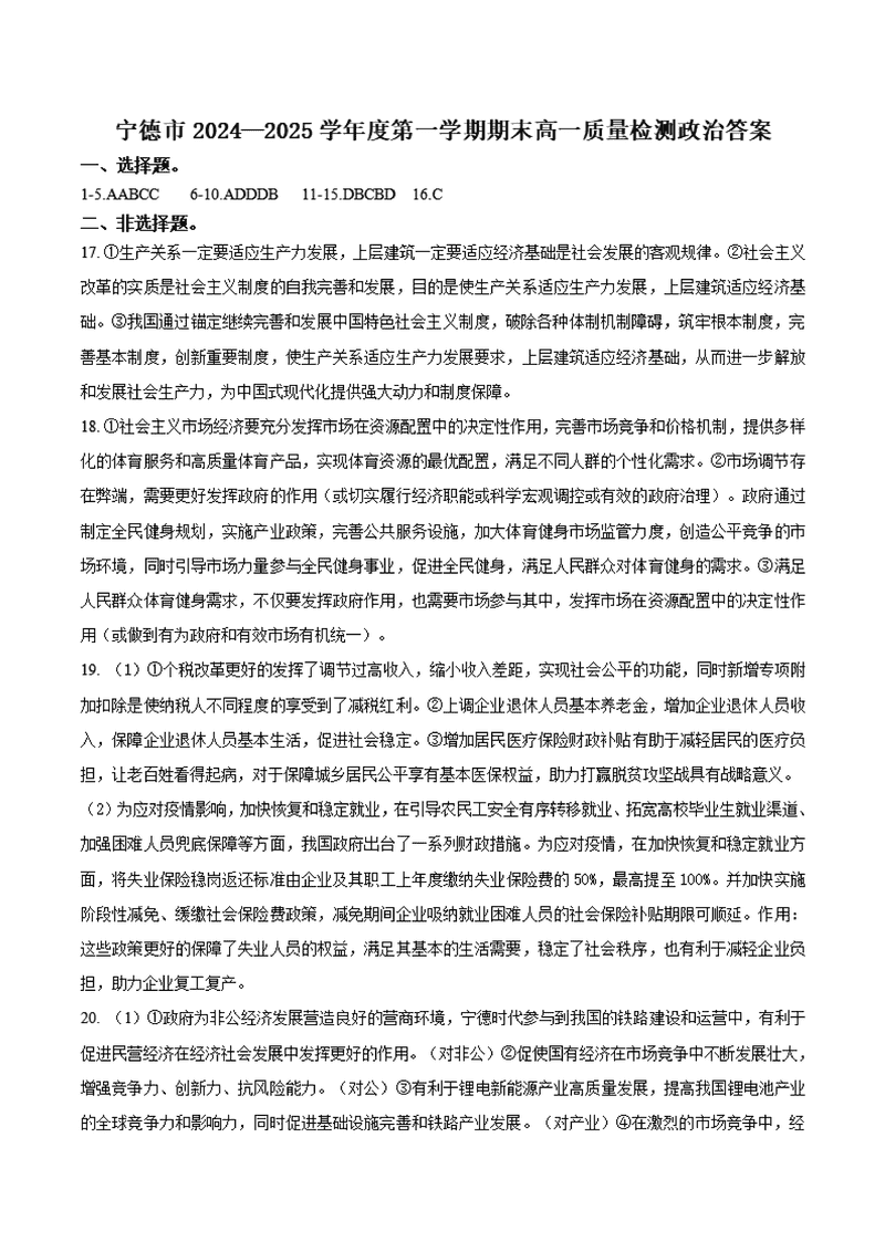 福建宁德2024-2025学年高一上学期1月期末政治试题及答案 时间:2025-01-27 福建 高中政治 福建宁德2024-2025学年高一上学期1月期末政治考试已于近日开考,为方便考生考后及时查看考试情况,查漏补缺、弥补不足,本文整理了试题答案解析相关信息! 政治试题及答案解析