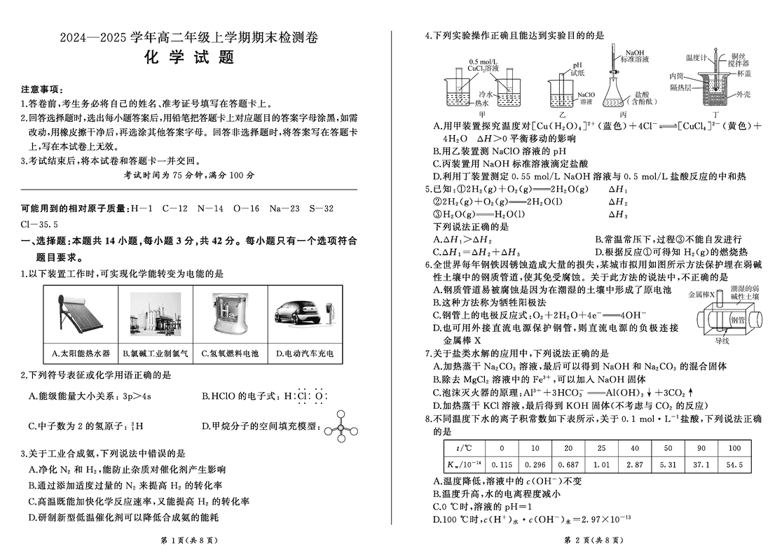 湖南省2024-2025学年高二上学期1月期末化学试题及答案 时间:2025-01-27 湖南 高中化学 湖南省2024-2025学年高二上学期1月期末化学考试已于近日开考,为方便考生考后及时查看考试情况,查漏补缺、弥补不足,本文整理了试题答案解析相关信息! 化学试题及答案解析