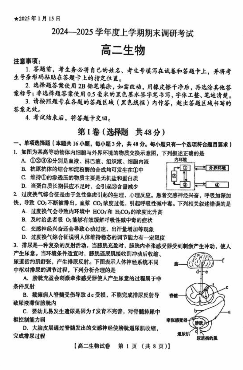 河南三门峡2024-2025学年高二上学期1月期末生物试题及答案 时间:2025-01-27 河南 高中生物 河南三门峡2024-2025学年高二上学期1月期末生物考试已于近日开考,为方便考生考后及时查看考试情况,查漏补缺、弥补不足,本文整理了试题答案解析相关信息! 生物试题及答案解析