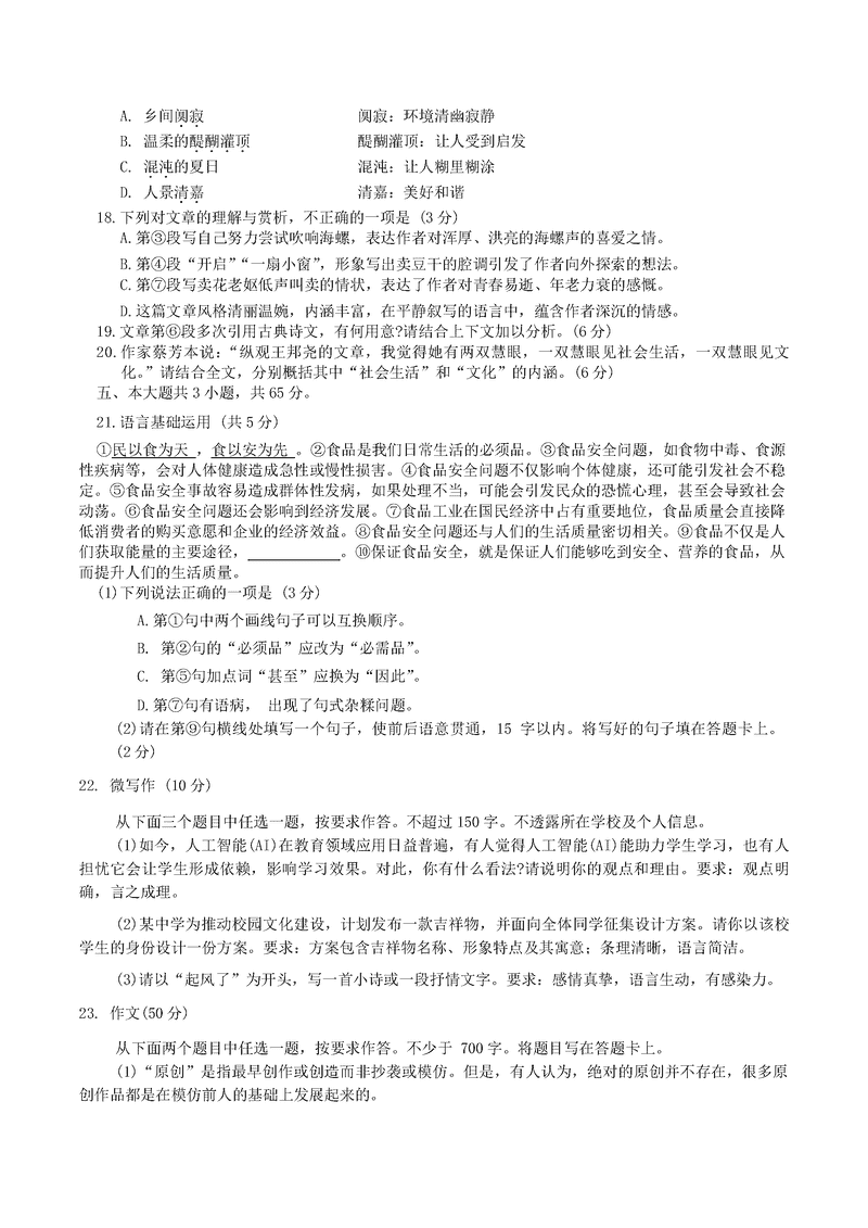 北京市丰台区2024-2025学年高二上学期期末语文试题及答案 时间:2025-01-27 北京 高中语文 北京市丰台区2024-2025学年高二上学期期末语文考试已于近日开考,为方便考生考后及时查看考试情况,查漏补缺、弥补不足,本文整理了试题答案解析相关信息! 语文试题及答案解析