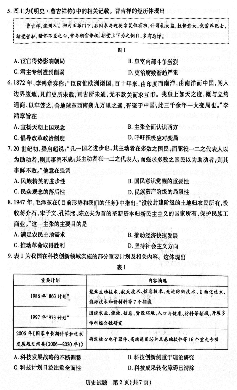 历史试题及答案解析